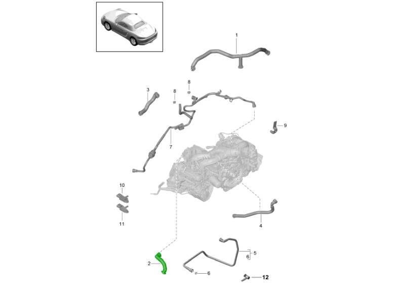 As part of the 944 Turbo cooling system, this hose supports the flow of coolant through key engine components, helping maintain stable operating temperatures and ensuring the temperature sensor receives accurate readings.