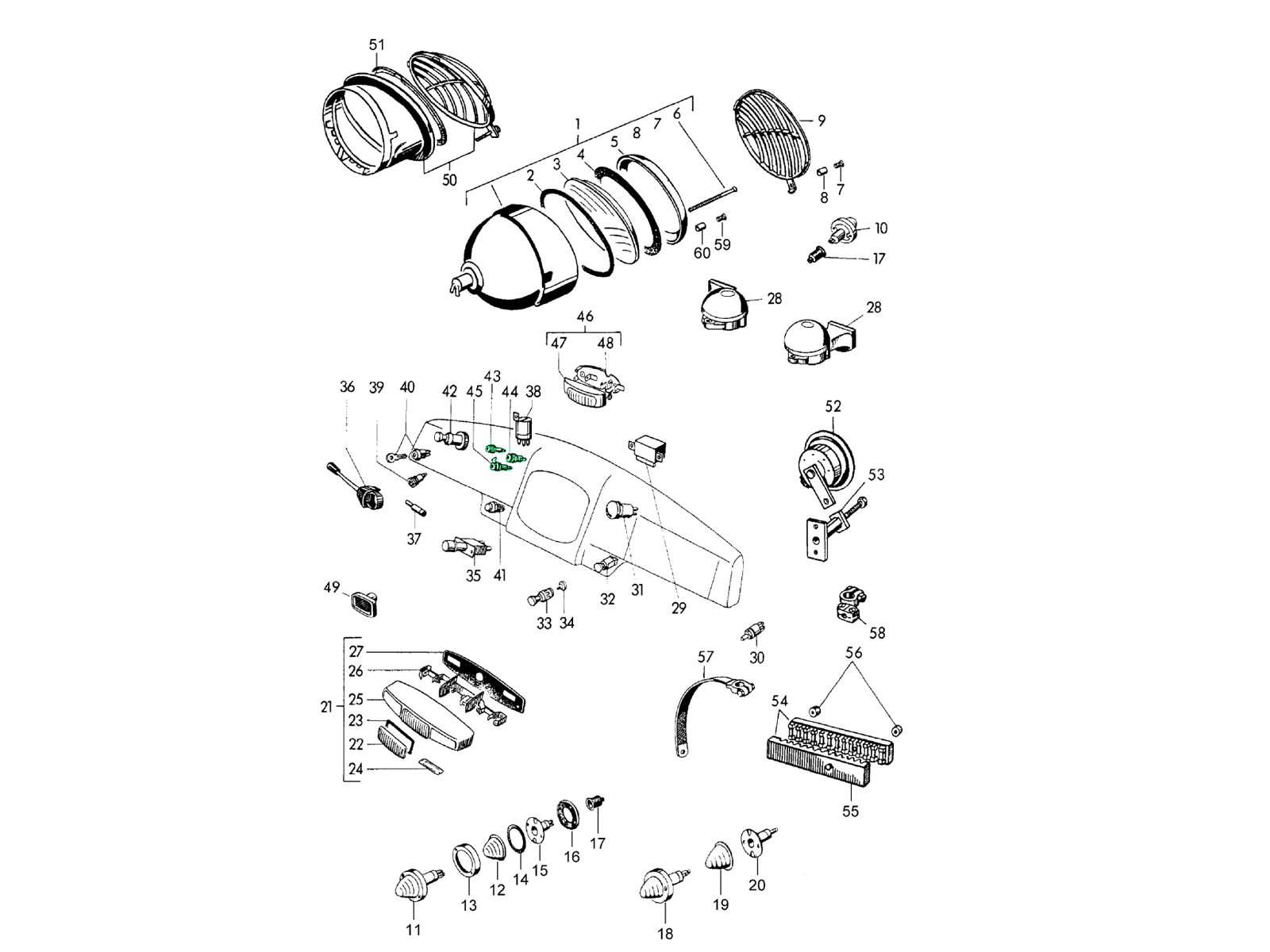 Warning lights are a critical safety and monitoring feature. A non-functioning or degraded dashboard control light may prevent the driver from noticing oil pressure loss, charging system faults, or other issues that could lead to engine damage. Replacing worn or faulty warning lights with OE Match components restores proper system indication and preserves the authenticity of the classic Porsche dashboard.