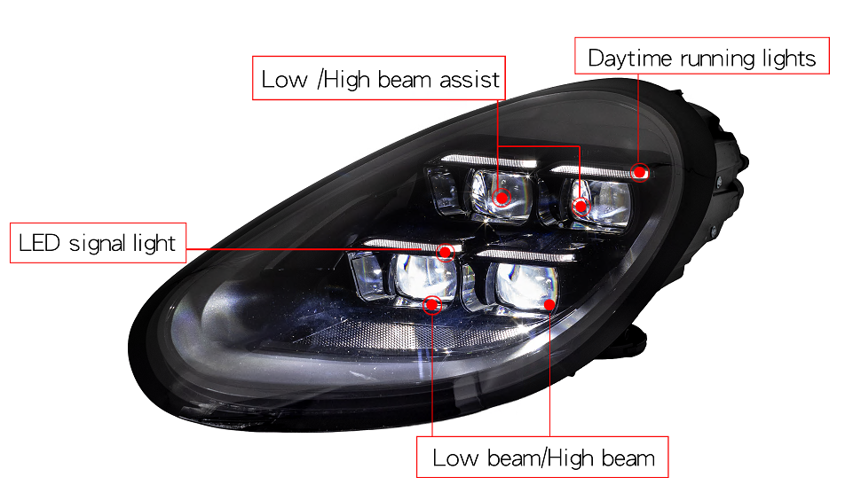 Diese Scheinwerfer sind Plug-and-Play-fähig für Fahrzeuge, die mit Xenon-Scheinwerfern mit Porsche Dynamic Lighting System (PDLS) ausgestattet sind – Optionscodes 8BE, 8BC, 8EF, 8EE.