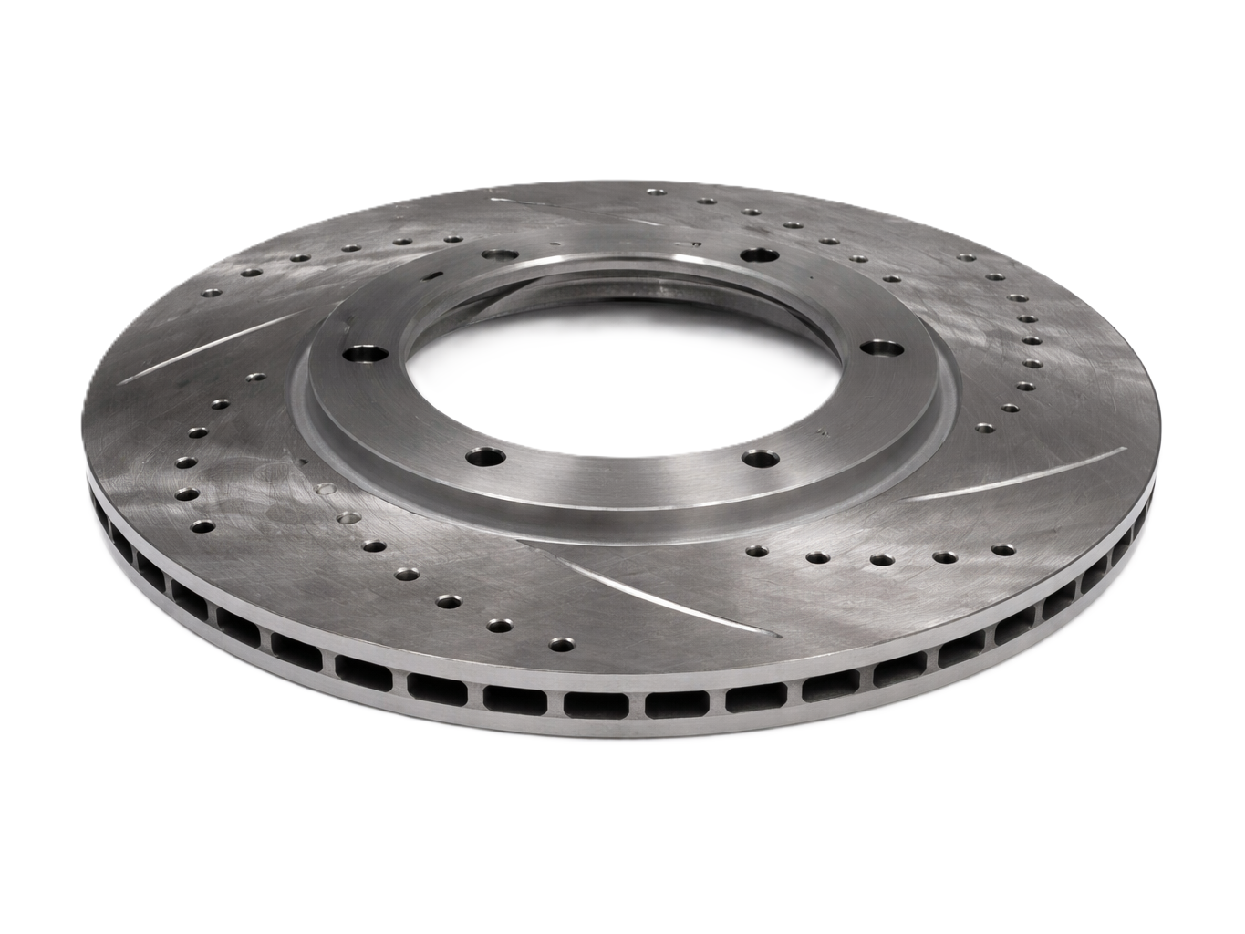 - Verbesserte Kühlung und reduziertes Bremsfading (quergebohrtes Design)