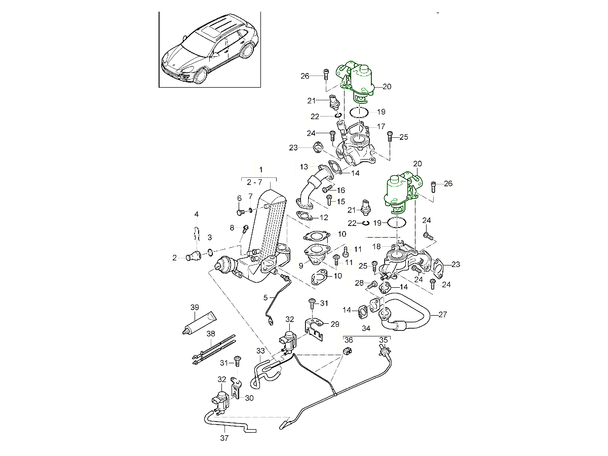 • Führt einen kontrollierten Teil der Abgase in den Ansaugtrakt zurück, um die Verbrennungstemperatur zu senken und die NOx-Emissionen zu reduzieren.