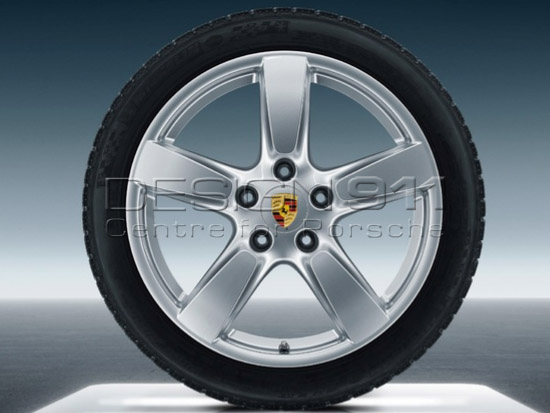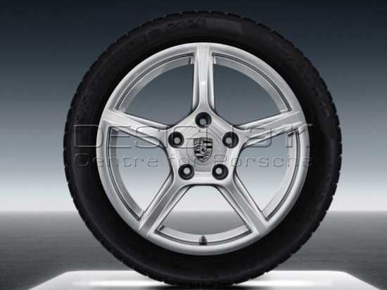 Original Porsche 18 Zoll Boxster Felgen mit Winterbereifung. Leichtmetallrad im puristischen 5-Speichen-Design.Radabmessungen (Einpresstiefe (ET) in mm):