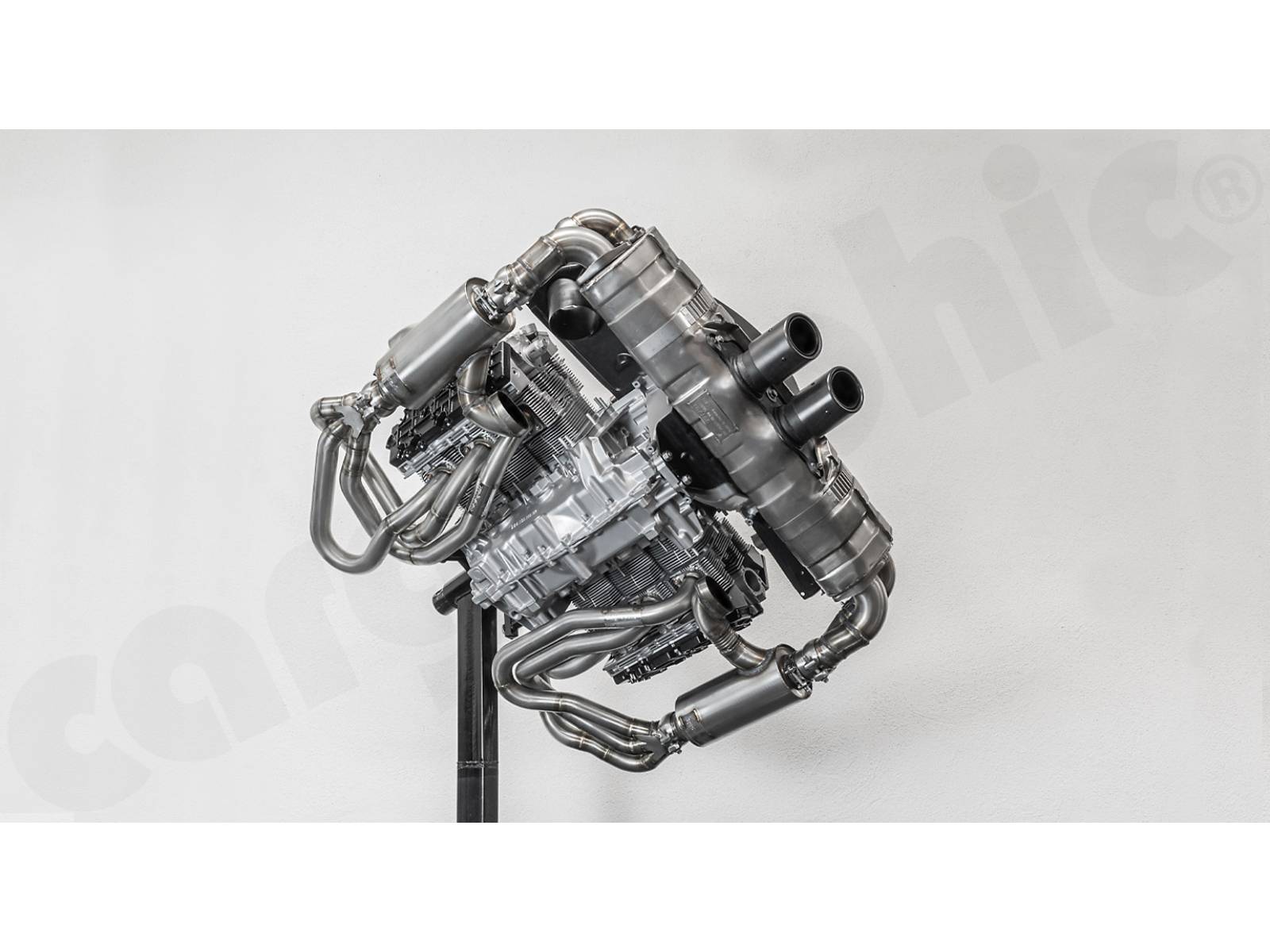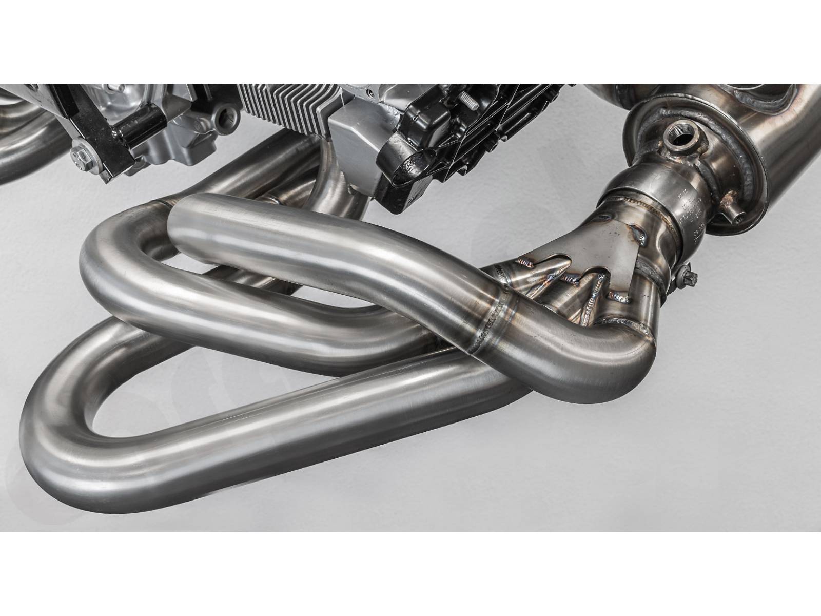 - Um einen maximalen Abstand zu den Ventildeckeln zu erreichen, wurden die Sammlerkästen und Schalldämpfer-Einlassflansche so weit wie möglich nach außen positioniert, um die Wärmeabstrahlung zu minimieren.
