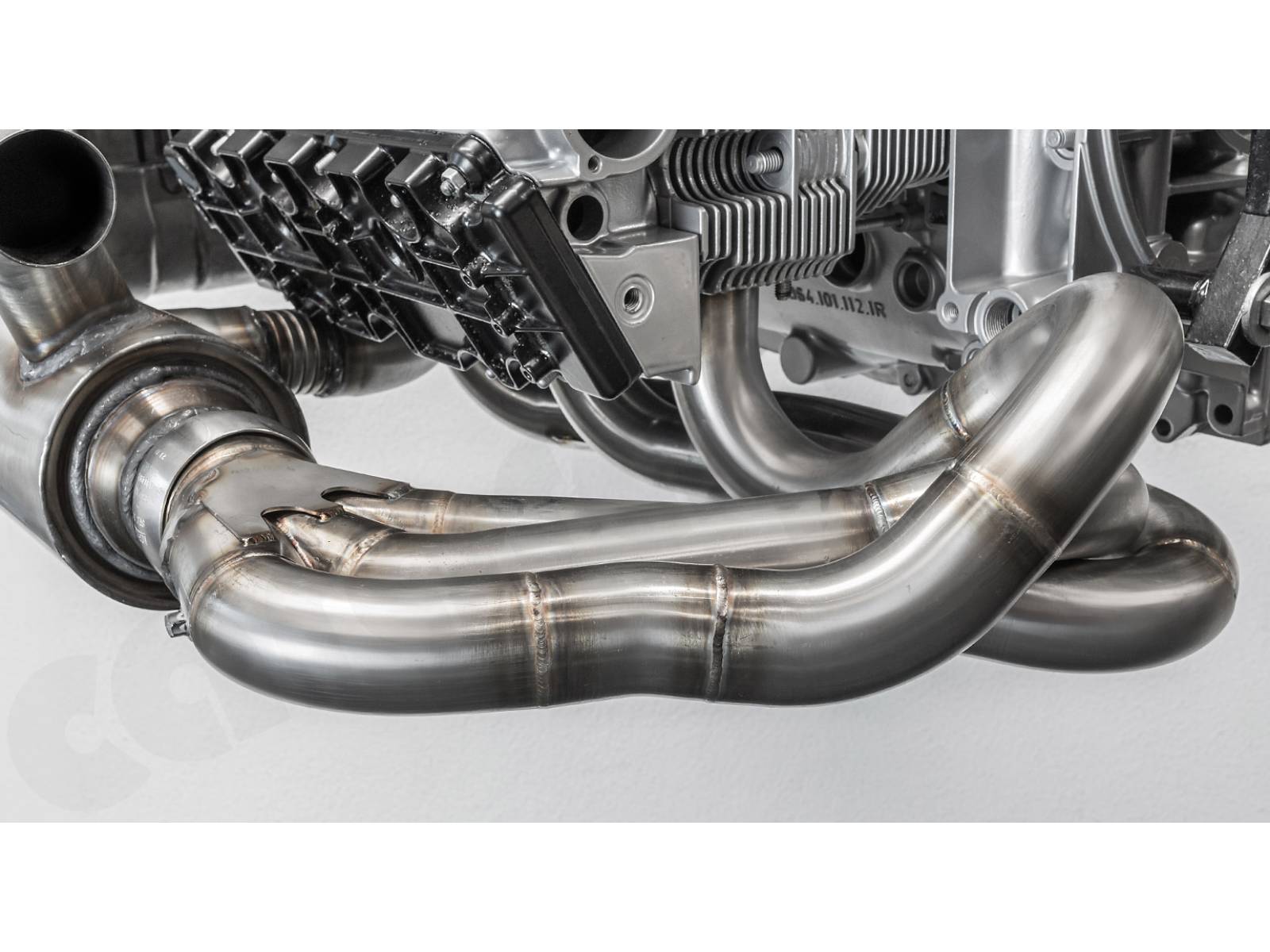 - Die Sammlerkästen und Schalldämpfer-Einlassflansche sind so weit wie möglich nach außen versetzt, um aufgrund der Wärmestrahlung einen maximalen Abstand zu den Ventildeckeln zu erreichen.
