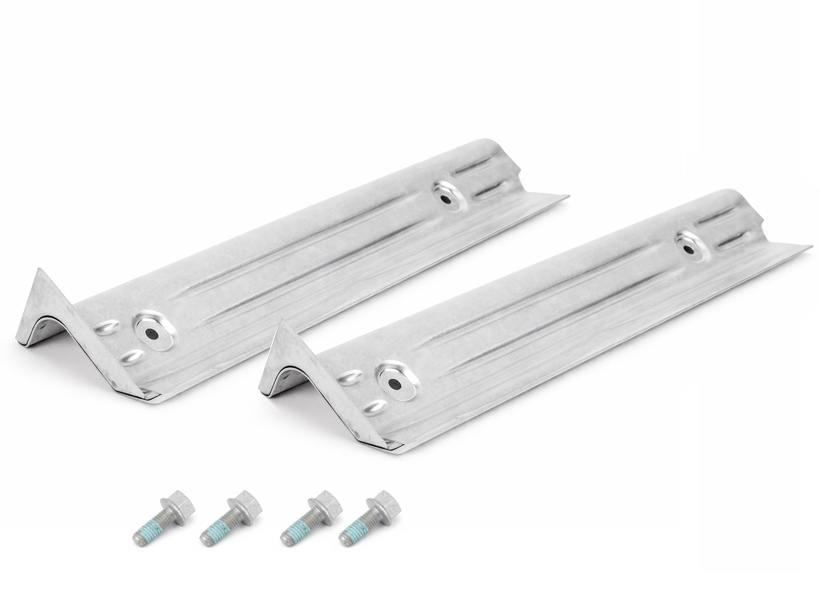 Original heat shields commonly corrode, weaken, or fail due to constant exposure to heat and moisture. A damaged or missing shield can lead to overheating of ignition coils, increasing the risk of misfires and reduced engine reliability. Replacing both shields together, along with new mounting bolts, ensures proper thermal protection and prevents issues caused by worn or seized hardware.