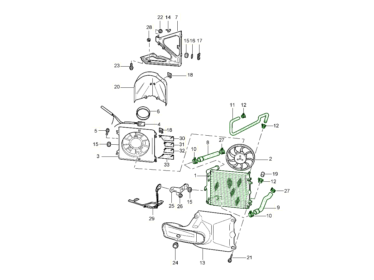 Welche Funktion haben die Kühlmittelschläuche des Kühlerabschnitts?