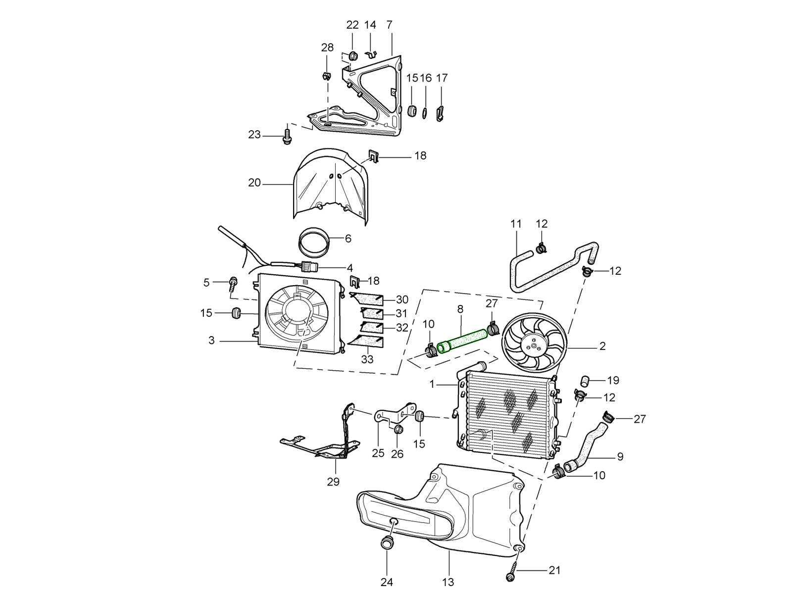 Welche Funktion haben die Kühlmittelschläuche des Kühlerabschnitts?