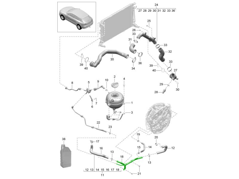 Kühlmittelkühlsystem / Kühlmittelausgleichsbehälter (Modell: CTMA,CTM, CTLA,CTL, DCNA,DCN, DHKA,DHK) 95B.1 Macan 3.0L / 3.6L 2014-18 105-040