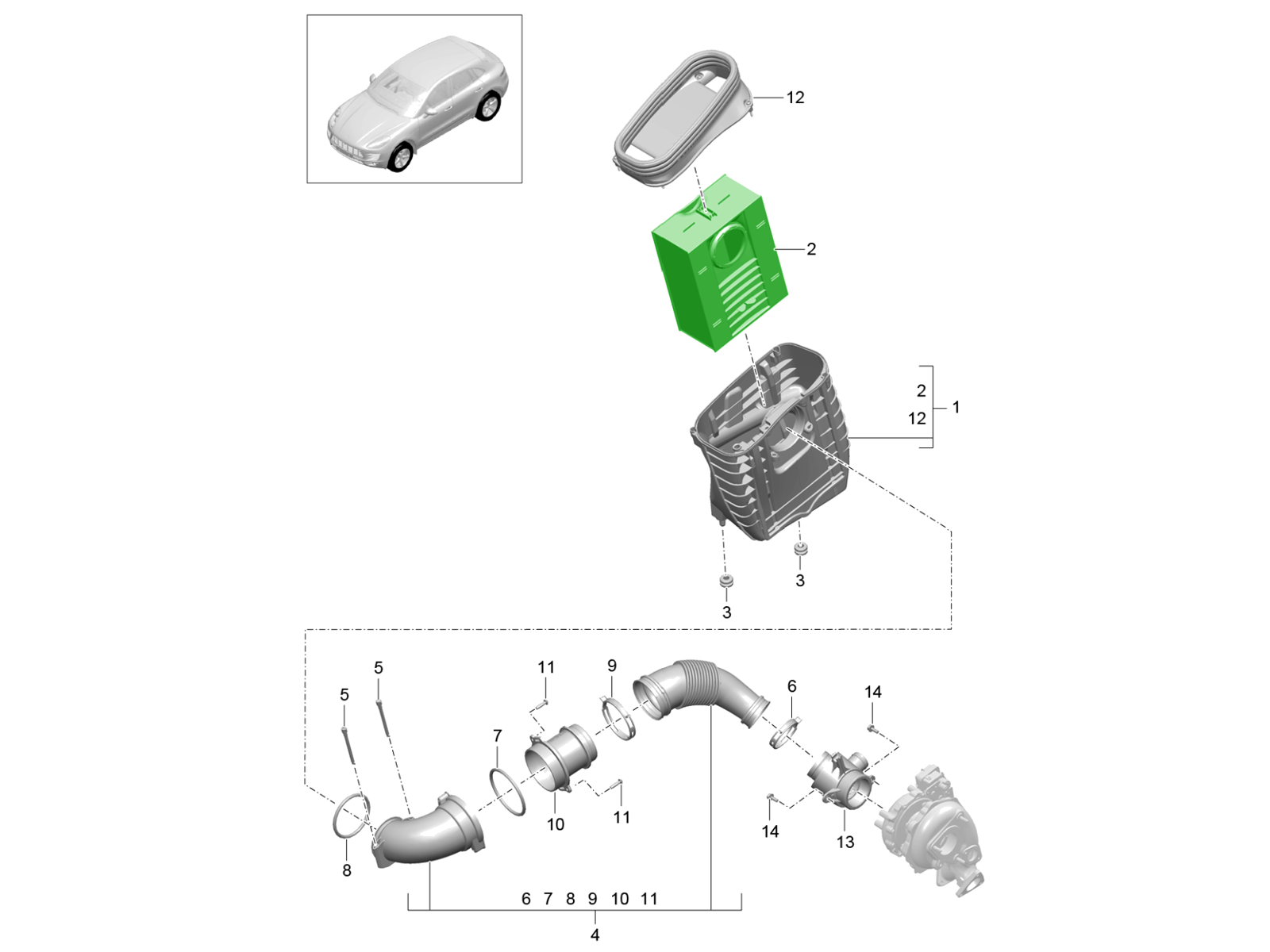 Luftfilter mit Anschlussteilen (Modell: CDUD,CTBA, CTBB,CTBC) 95B.1 Macan 3.0L Diesel 2014-18 106-010