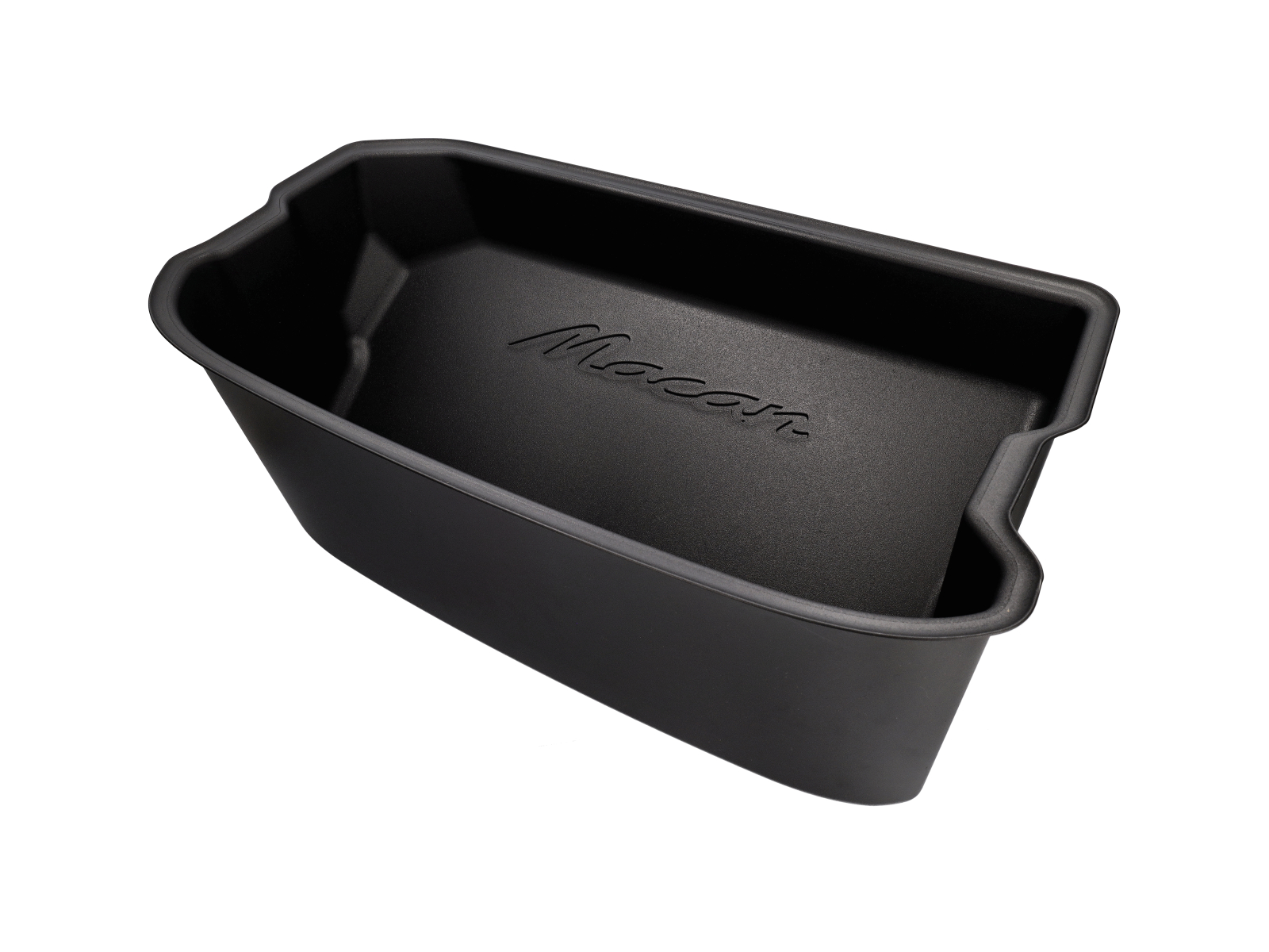 Individuelle schwarze Schutzwanne mit „Macan“-Logo. Wasserundurchlässig und abwaschbar. Mit Griffen versehen.