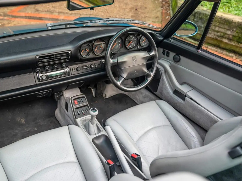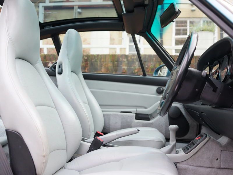 Dieser Speedster in Silbermetallic gilt als eines von nur 64 im Vereinigten Königreich gelieferten rechtsgelenkten „Turbo Look“-Exemplaren und ist in der Tat etwas ganz Besonderes. Mit einer reichen und detaillierten Geschichte, die aus über 20 Besuchen bei offiziellen Porsche-Zentren für Dienstleistungen mit allen unterstützenden Rechnungen und Papieren besteht, kann jeder einzelne der weniger als 20.000 Meilen auf dem Kilometerzähler verifiziert werden! Unglaublicherweise hat dieses Beispiel nur 3 registrierte Halter, seit es vor über 30 Jahren zum ersten Mal registriert wurde. Darüber hinaus ist dieser spezielle Speedster noch spezieller, da er 1993 auf der Earls Court Motor Show im Rahmen der Feierlichkeiten zum 30-jährigen Jubiläum des 911 ausgestellt wurde!