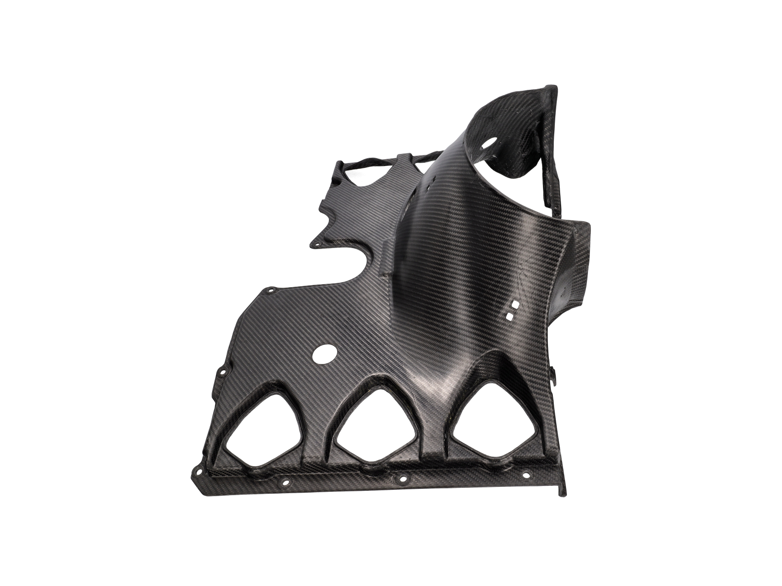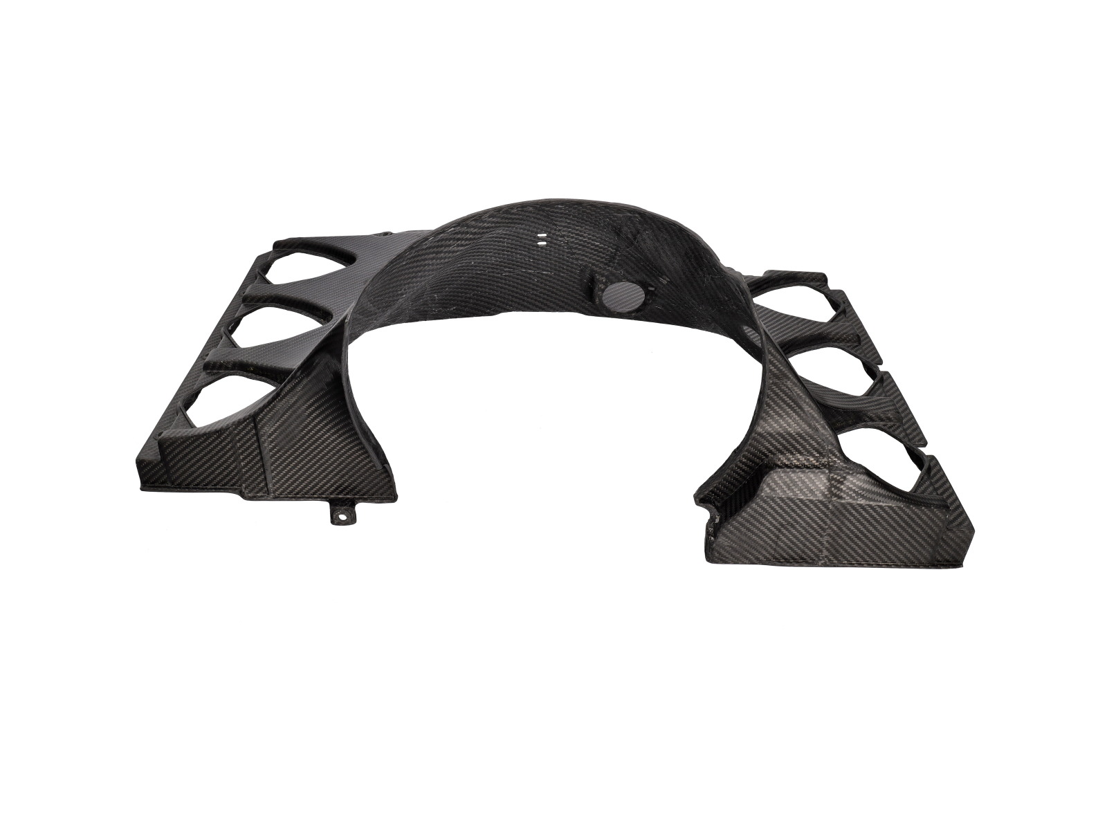 Mejore el aspecto del compartimiento del motor con esta cubierta de ventilador completamente de fibra de carbono.