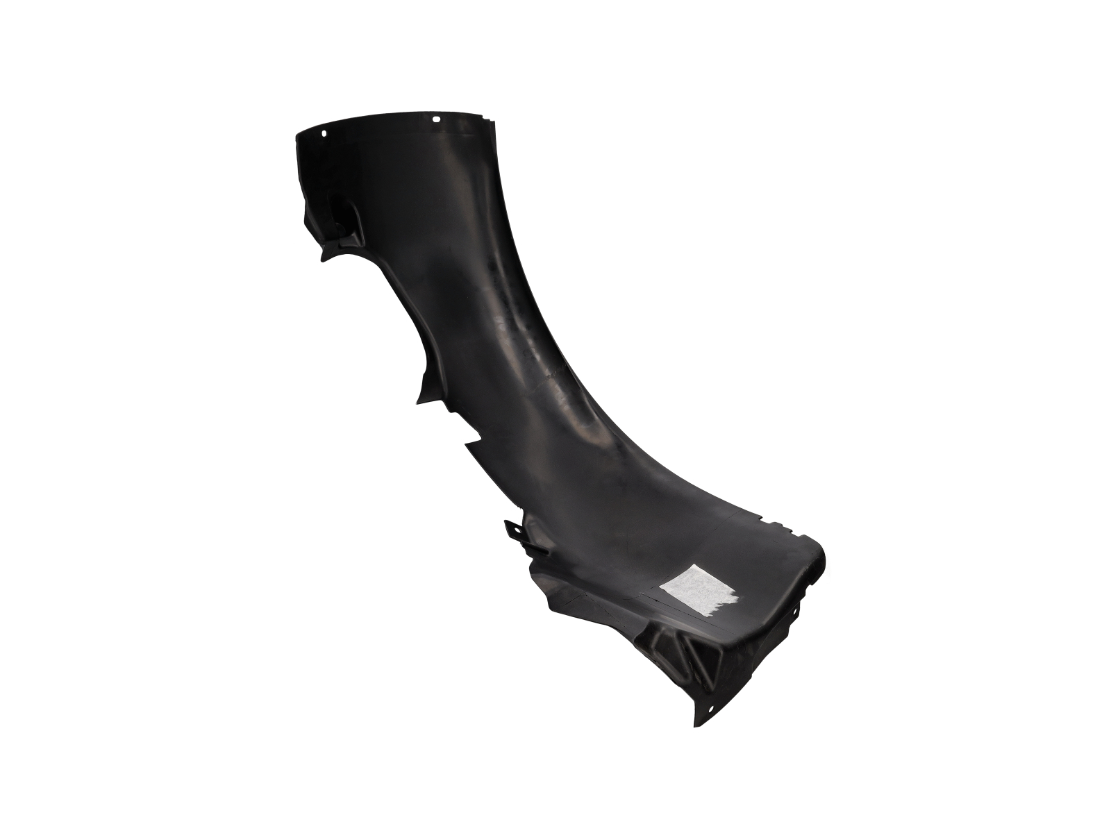 Revestimiento del paso de rueda, delantero. Restaure la protección interior de sus pasos de rueda delanteros con estos revestimientos originales OEM para el Porsche 911 (997). La pieza izquierda (99750420301) cubre la parte trasera del paso de rueda delantero izquierdo, y la pieza derecha (99750420401) la parte trasera del paso de rueda delantero derecho. Estos revestimientos de plástico moldeado están diseñados para un ajuste preciso, protegiendo la suspensión y los componentes de la carrocería de residuos, salpicaduras de agua y contaminación, a la vez que mejoran el acabado acústico y estético en el área del paso de rueda.