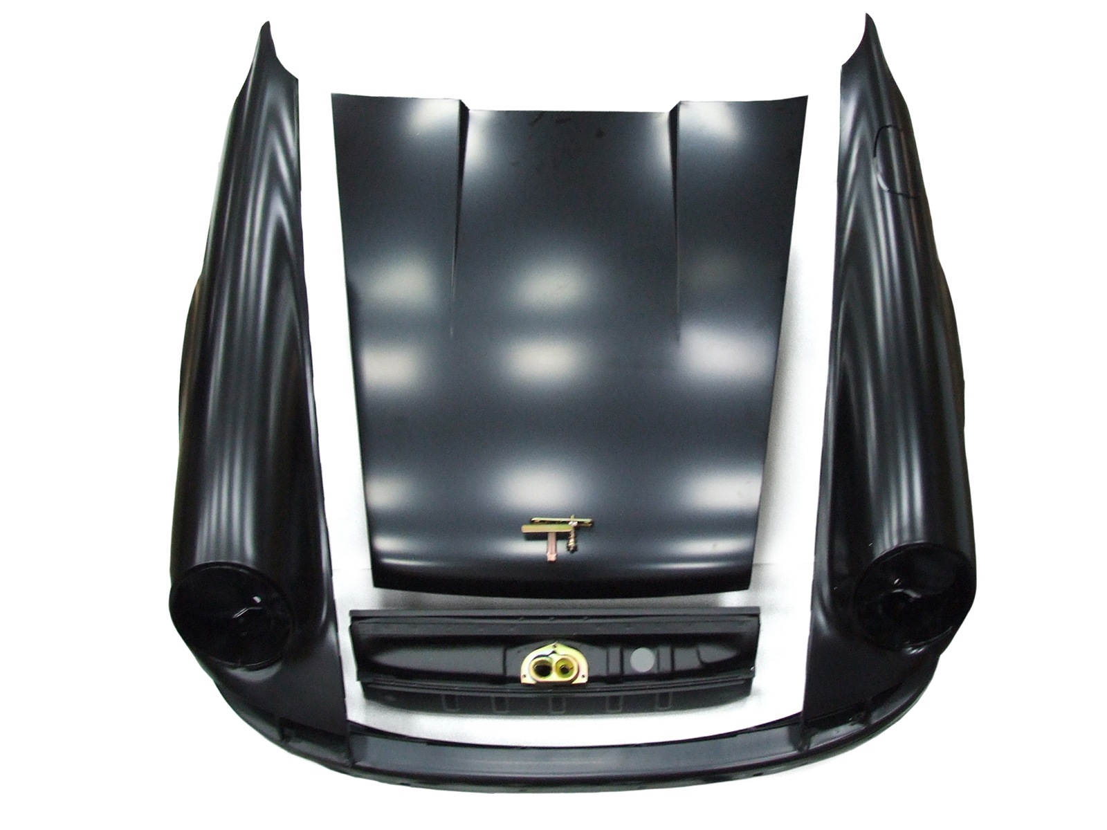 Reproducciones auténticas de paneles de capó y mecanismos de bloqueo diseñados para modelos Porsche tradicionales, como el 356, el 911 Classic y el 912.
