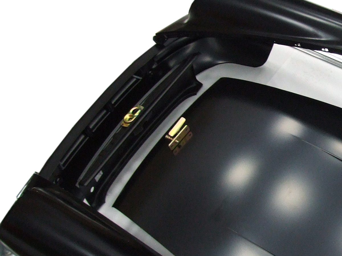 Si extiende el capó corto y conserva el panel posterior, quedará un espacio entre este y el parachoques. Este panel, que va entre el parachoques y el panel de la cerradura, facilita una instalación impecable.