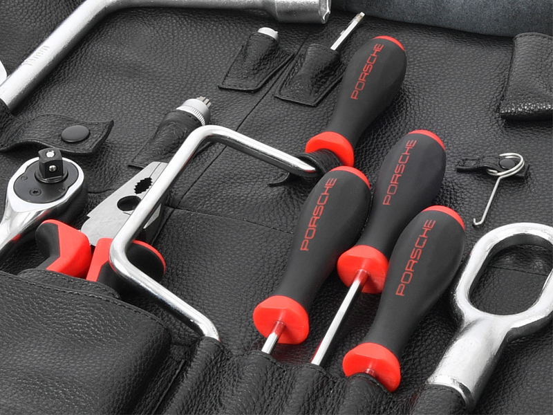 El contenido ha sido reconstruido en base a la bolsa de herramientas original y reeditado con la ayuda de los dibujos técnicos de las herramientas del proveedor original de ese momento. Como broche de oro final, los expertos de Porsche Classic le han dado a la bolsa algunas mejoras técnicas y visuales y también han agregado algunas herramientas útiles adicionales.