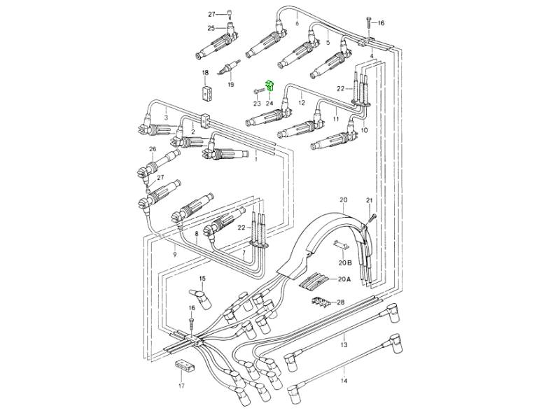 El clip para cables de encendido Porsche es un retenedor original de fábrica, diseñado para asegurar los cables de las bujías en su lugar a lo largo del motor. Un tendido correcto de los cables de encendido es esencial para un rendimiento fiable del motor, ya que evita que los cables se muevan, rocen o se sobrecalienten con los componentes cercanos.