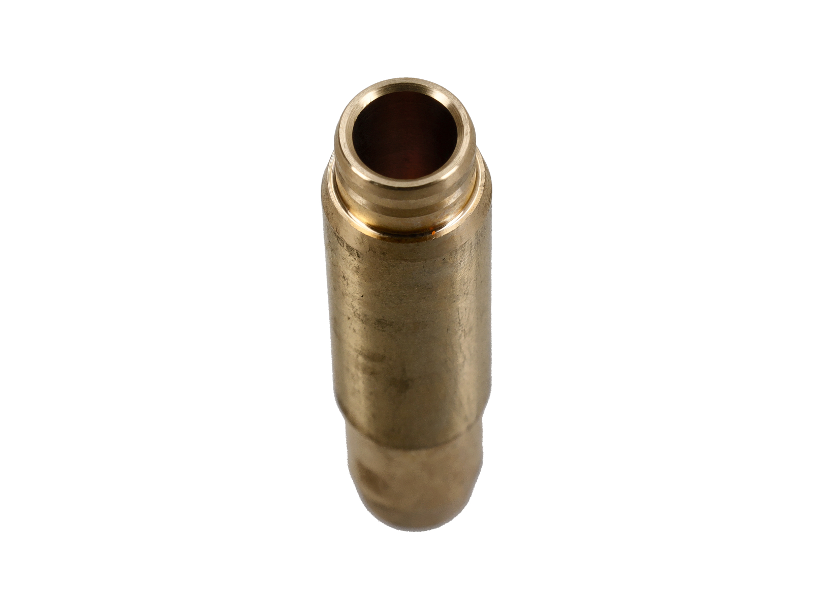 Esta es una guía de válvula de admisión de repuesto: el pequeño buje cilíndrico dentro de la culata que guía el vástago de la válvula de admisión, asegurando una alineación correcta y un movimiento suave y controlado al abrir y cerrar la válvula. En algunas reconstrucciones o remecanizados, se utilizan guías de mayor tamaño para restablecer el ajuste correcto después de la reparación de la culata.