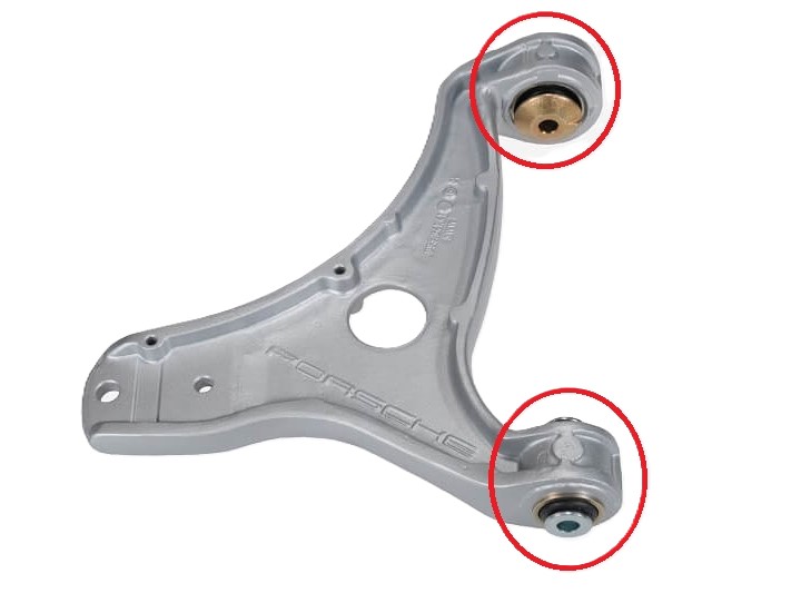 Observamos fallas en los bujes de control con gran frecuencia en los autos 964. Las fallas parecen ser independientes del kilometraje; la goma se deteriora con el tiempo. El síntoma es una vibración en el volante.
