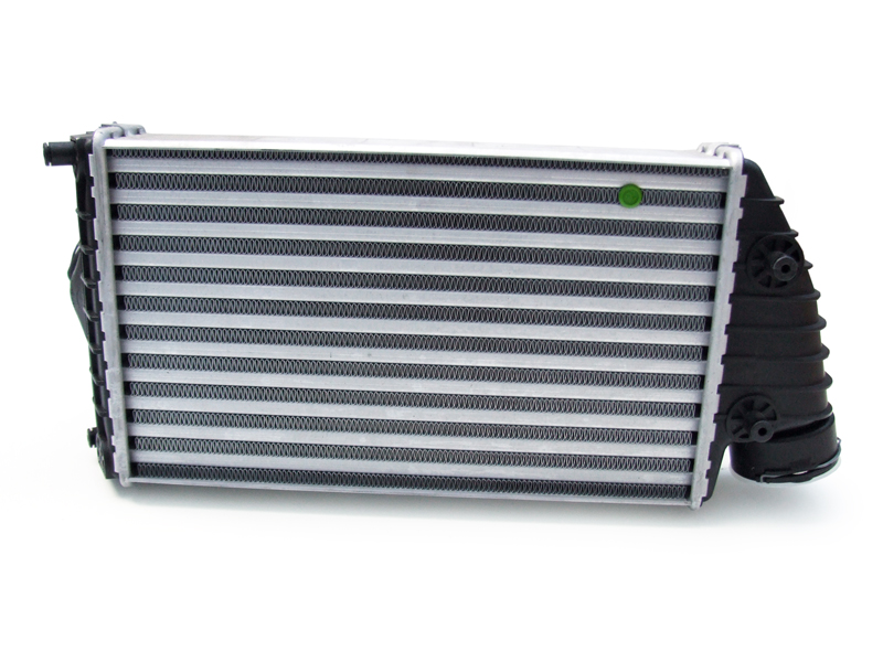 Los intercoolers controlan el flujo lateral a lo largo de sus 16 pulgadas. Este intercooler es más que suficiente para cualquier 996TT o GT2 altamente optimizado, incluso para aplicaciones de hasta 900 hp. Los intercoolers DesignTek Porsche producen un alto caudal y una drástica reducción de temperatura, gracias principalmente a dos factores clave. En primer lugar, esta gran reducción de temperatura se logra gracias a núcleos de intercooler un 40 % más grandes que los de serie, cada uno con una capacidad de 750 CFM. En segundo lugar, el elemento más importante de un intercooler, en nuestra opinión, son los tanques terminales de entrada/salida. Nuestros tanques terminales están optimizados para aumentar considerablemente el flujo de aire y reducir la caída de presión, lo que se traduce en una mayor eficiencia. Las superficies externas de aluminio están protegidas con un revestimiento protector gris plateado.