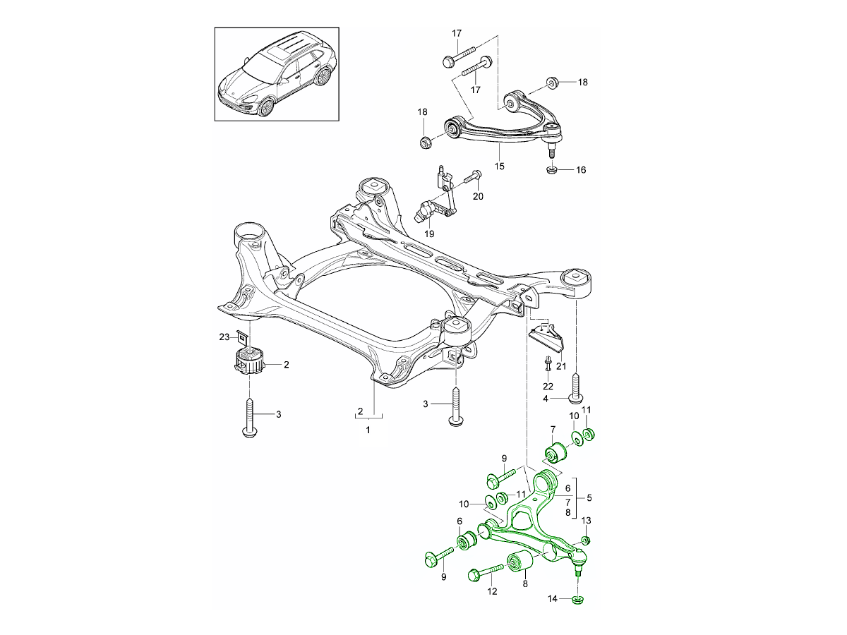 Subchasis de suspensión / Brazo oscilante / Control alcance luces / Sensor de nivel Cayenne 92A (958) 2015>> 401-001