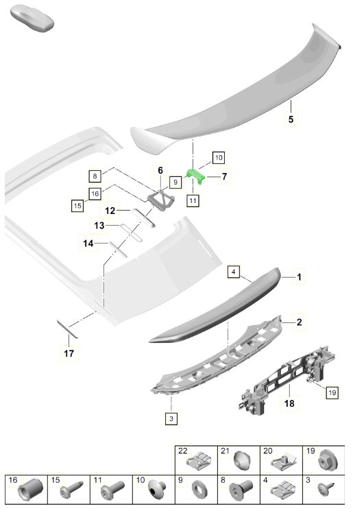 El alerón trasero TECHART II presenta un perfil de ala del color de la carrocería (para pintar) montado en la tapa del maletero.