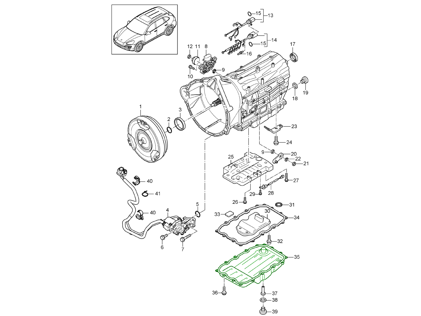 El cárter de aceite de la caja de cambios desempeña un papel vital en el sistema de transmisión de su Porsche. Actúa como depósito del líquido de la caja de cambios, garantizando la lubricación, la refrigeración y el funcionamiento hidráulico adecuados de los componentes internos. Un cárter de alta calidad mantiene el aceite de la transmisión contenido, filtrado y libre de contaminantes, esencial para mantener cambios de marcha suaves y el rendimiento general de la transmisión.