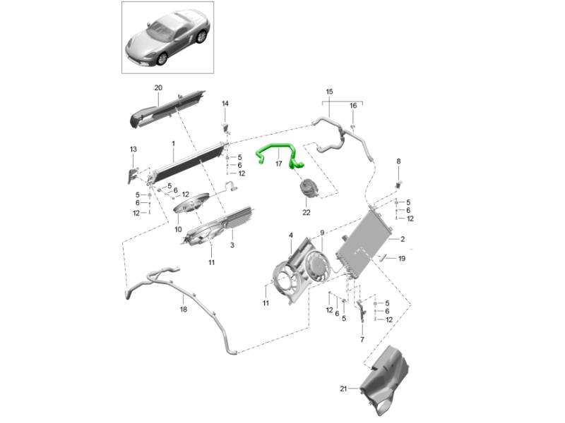 La durite supérieure de radiateur d'origine Porsche (référence 95810640140) est un composant essentiel du système de refroidissement du Porsche Cayenne 3.0 L Diesel (958), garantissant une circulation optimale du liquide de refroidissement vers le radiateur. Sa conception, son ajustement et ses matériaux, conformes aux spécifications Porsche, contribuent à préserver la stabilité thermique du moteur, à assurer des performances fiables et à maintenir le circuit de refroidissement d'origine.