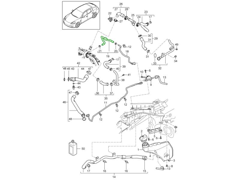 La durite de liquide de refroidissement est une durite moteur de qualité équivalente à celle d'origine, conçue pour transporter le liquide de refroidissement dans le système de refroidissement de certains modèles Porsche Panamera (970). Cette durite flexible assure une circulation optimale du liquide de refroidissement entre les principaux composants du système, contribuant ainsi à maintenir une température de fonctionnement moteur stable et à garantir le bon fonctionnement du chauffage. Elle offre un montage précis, une haute résistance à la chaleur et à la pression, ainsi qu'une grande durabilité.