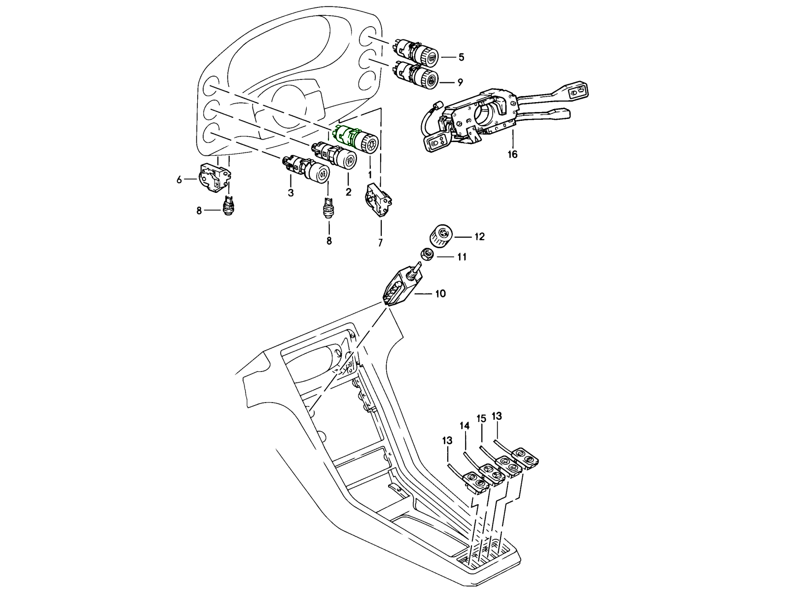 Ce commutateur actionne le mécanisme de lève-vitre électrique de la Porsche 928, assurant une commande fiable de montée/descente pour la vitre côté conducteur ou passager.