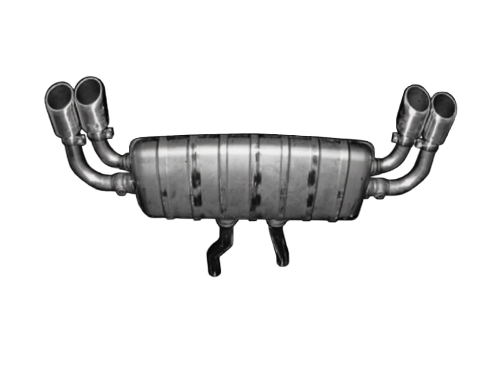 Système d'échappement sport. Comprend des silencieux principaux modifiés et deux garnitures à double tube avec un design Cayenne Turbo en aluminium poli et brillant avec une finition nanocoat. Le son sportif est sélectionné à l'aide du bouton SPORT existant.
