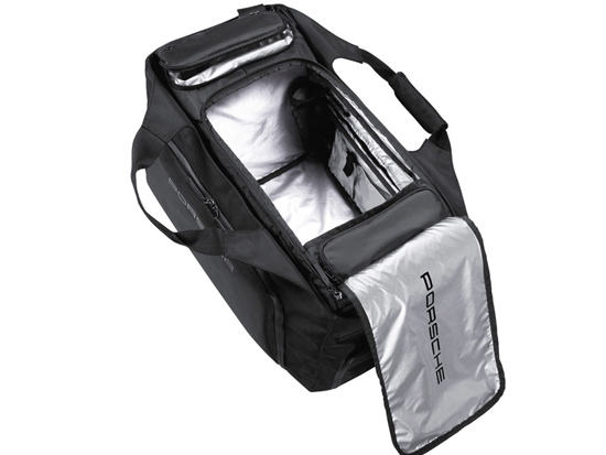 Sac de sport avec grand compartiment à chaussures principal et séparé. Avec bandoulière rembourrée. Avec sigle 'PORSCHE MOTORSPORT'.