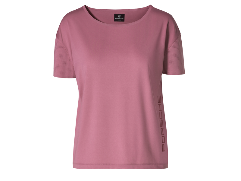 T-shirt ample avec manches insérées et perforées et large découpe. En jersey fonctionnel. Respirant et séchage rapide. Perforation supplémentaire au dos. Grand imprimé brillant transparent avec logo « PORSCHE » sur le devant et logo « PORSCHE » supplémentaire au dos. Bords découpés au laser et collés sur l'encolure et l'ourlet des manches.