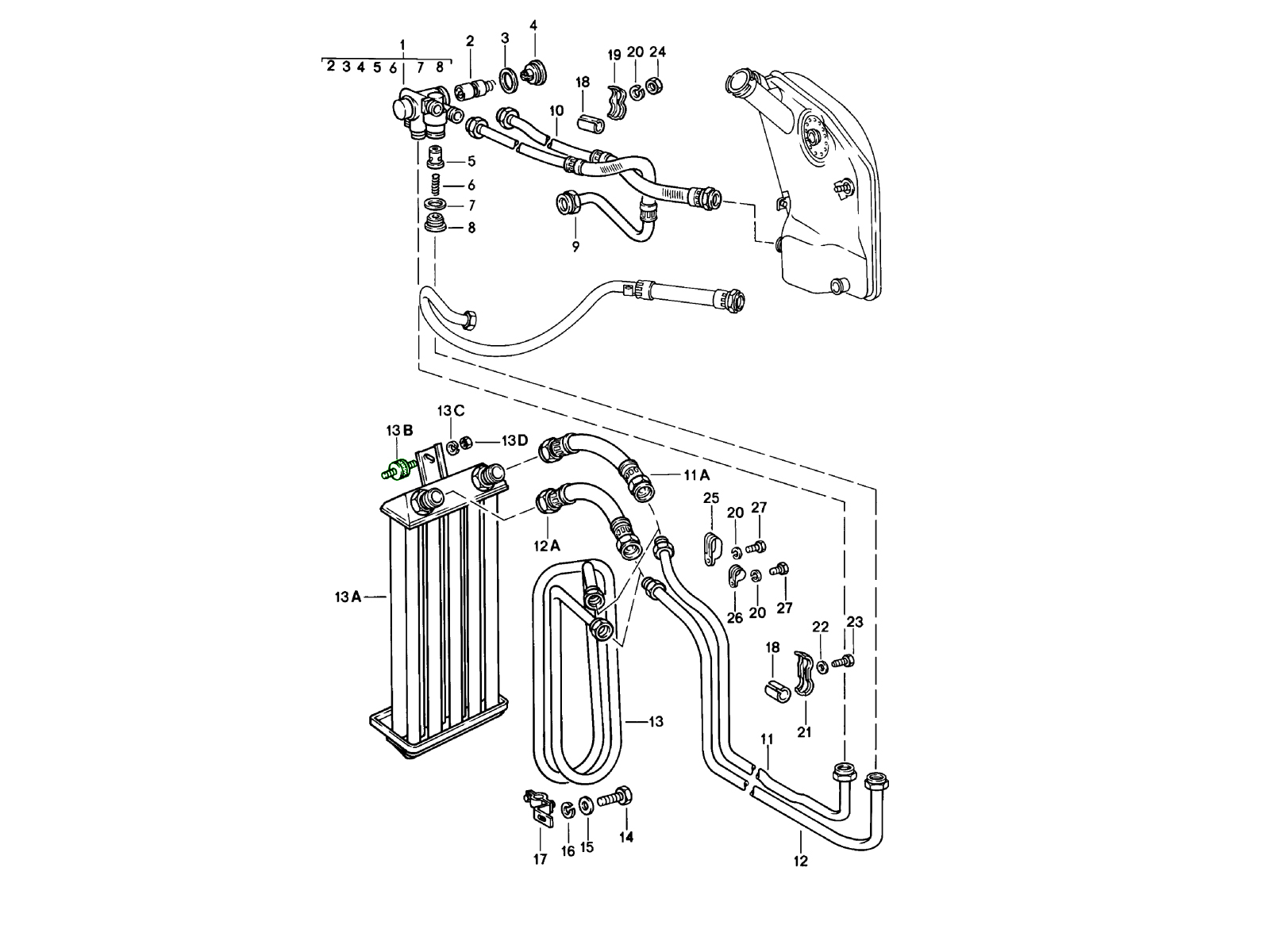 graissage moteur, serpentin de radiateur 911 TURBO 1975-77 104-05
