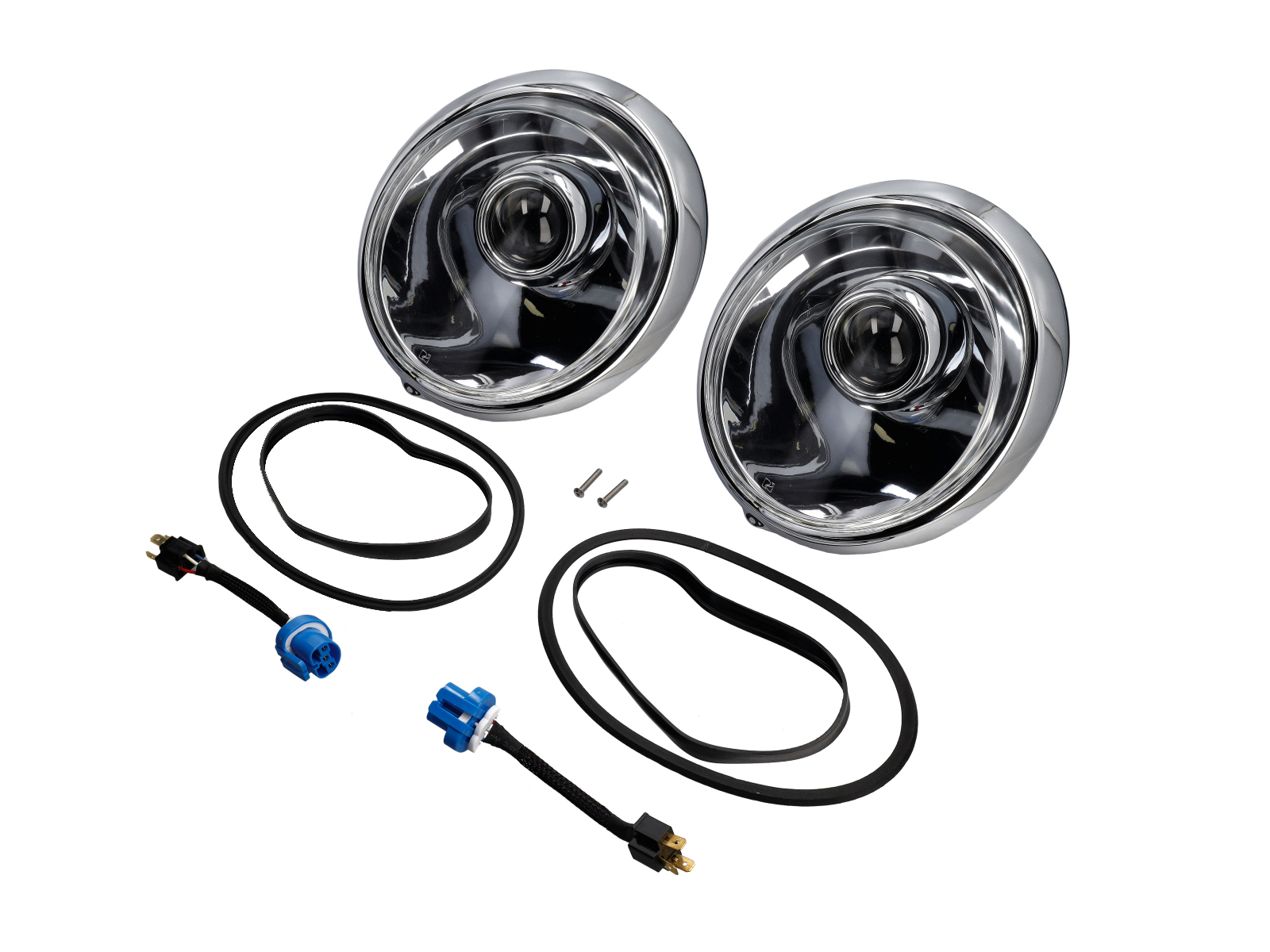 Ces phares à LED sont livrés avec des réflecteurs chromés et des lentilles transparentes à profil bas de style ancien