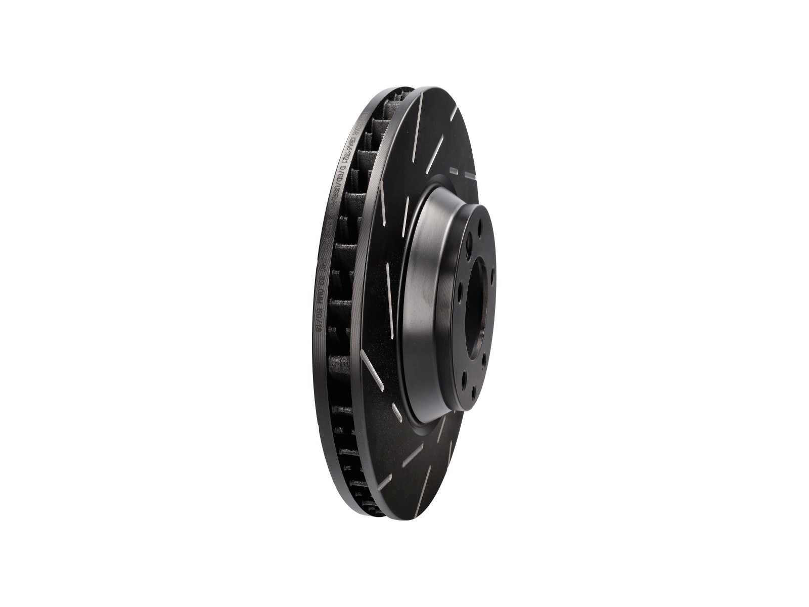 Disques de frein EBC Ultimax Le dernier modèle de rainures ultra silencieux pour les voitures de prestige et haut de gamme nécessitant des disques presque totalement silencieux avec la dernière finition noire résistante à la corrosion appliquée chimiquement. Ce revêtement noir a été testé avec le test de pulvérisation saline standard de l'industrie et a prouvé sa durée de vie entre 2 et 5 ans selon les conditions et représente le nec plus ultra en matière de prévention de la rouille des disques. Remarque : L'illustration montre un disque après qu'il a été utilisé pendant une période de temps et que la plaquette a frotté le revêtement noir dans la zone de freinage.