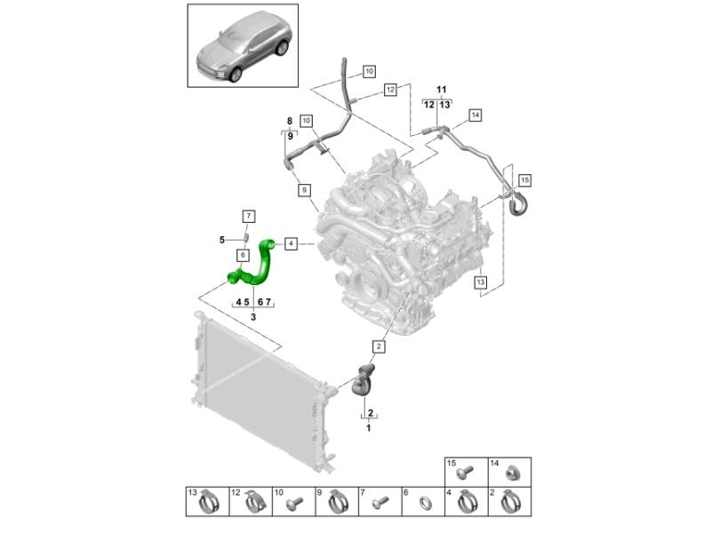 Maintenez votre moteur à la température optimale grâce à cette durite de refroidissement conforme aux spécifications d'origine, conçue pour une fiabilité et une performance durables. Spécialement conçue pour certains modèles Porsche 95B.2 Macan / 971.1 / 971.2 / 976 Panamera / 9YA / 9YA.2 Cayenne, cette durite joue un rôle essentiel dans le système de refroidissement de votre véhicule en assurant la circulation du liquide de refroidissement et un transfert de chaleur efficace.
