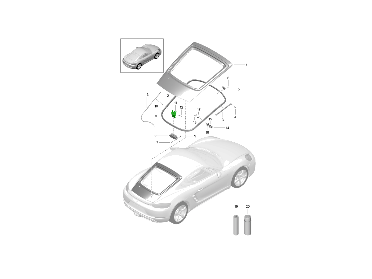 Le mécanisme de verrouillage du hayon arrière des Porsche 981 et 718 Cayman est un élément essentiel du système de verrouillage du coffre. Il maintient le hayon en place et s'intègre au système de verrouillage centralisé du véhicule pour garantir un fonctionnement sûr et fiable.