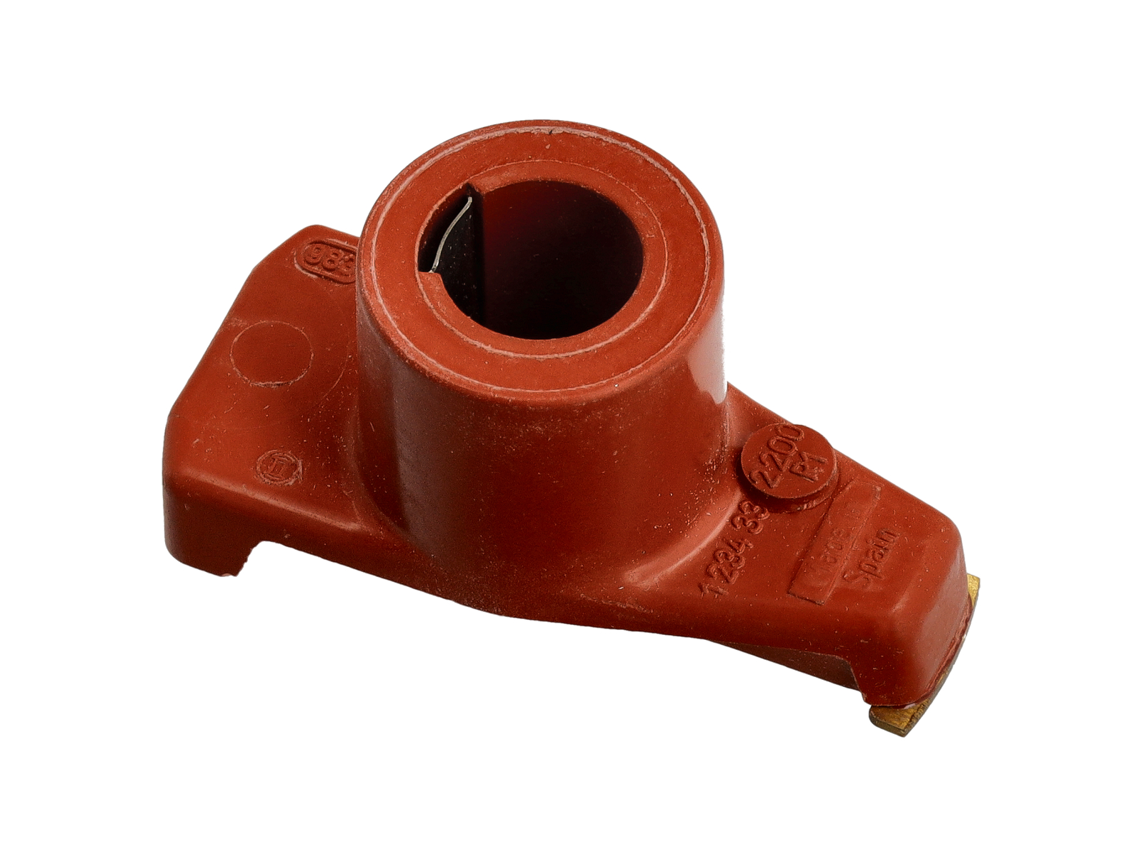 Il rotore è costruito in modo tale che la linguetta centrale sia collegata elettricamente al suo bordo esterno in modo che la tensione in ingresso al montante centrale viaggi attraverso il punto di carbonio fino al bordo esterno del rotore. Mentre l'albero a camme ruota, il rotore gira e il suo bordo esterno passa ciascuno dei terminali interni delle candele per accendere ciascuna candela.