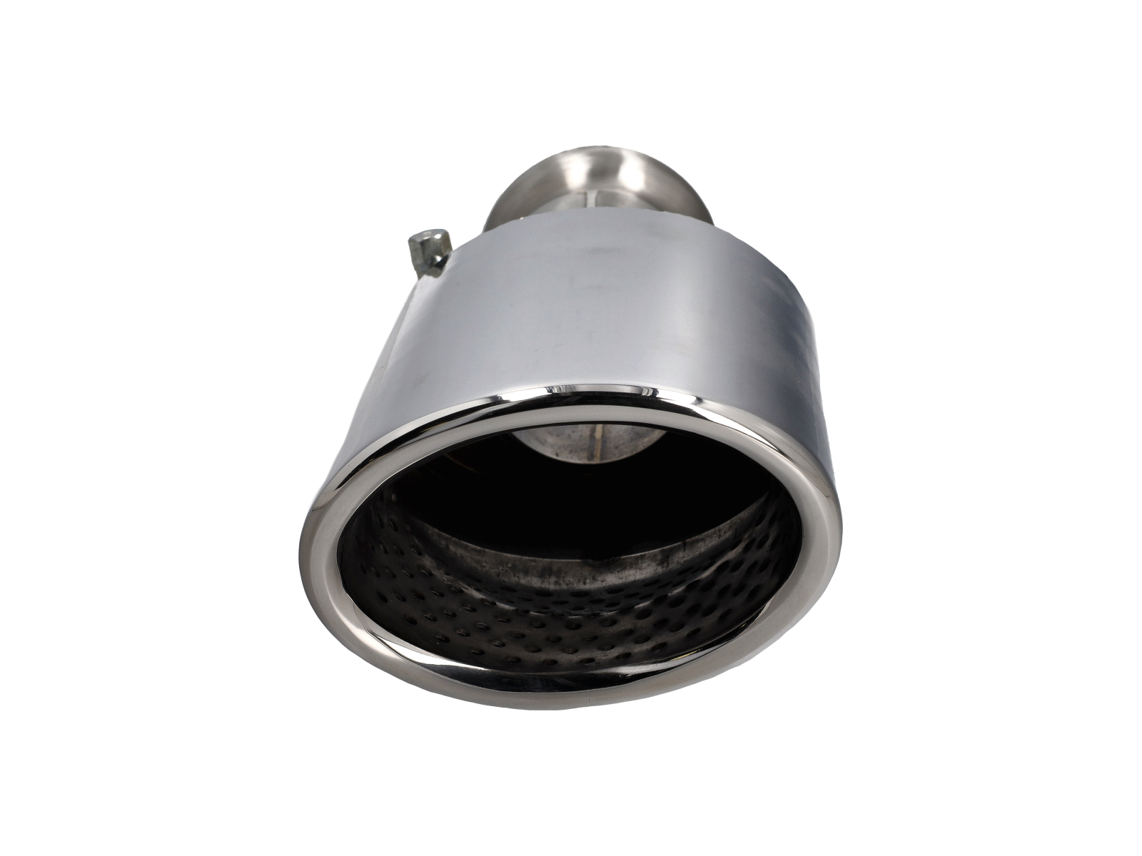 • Terminale di scarico CARGRAPHIC 115x85mm ovale, taglio slash, doppia parete con inserto forato - Lucidato a specchio
