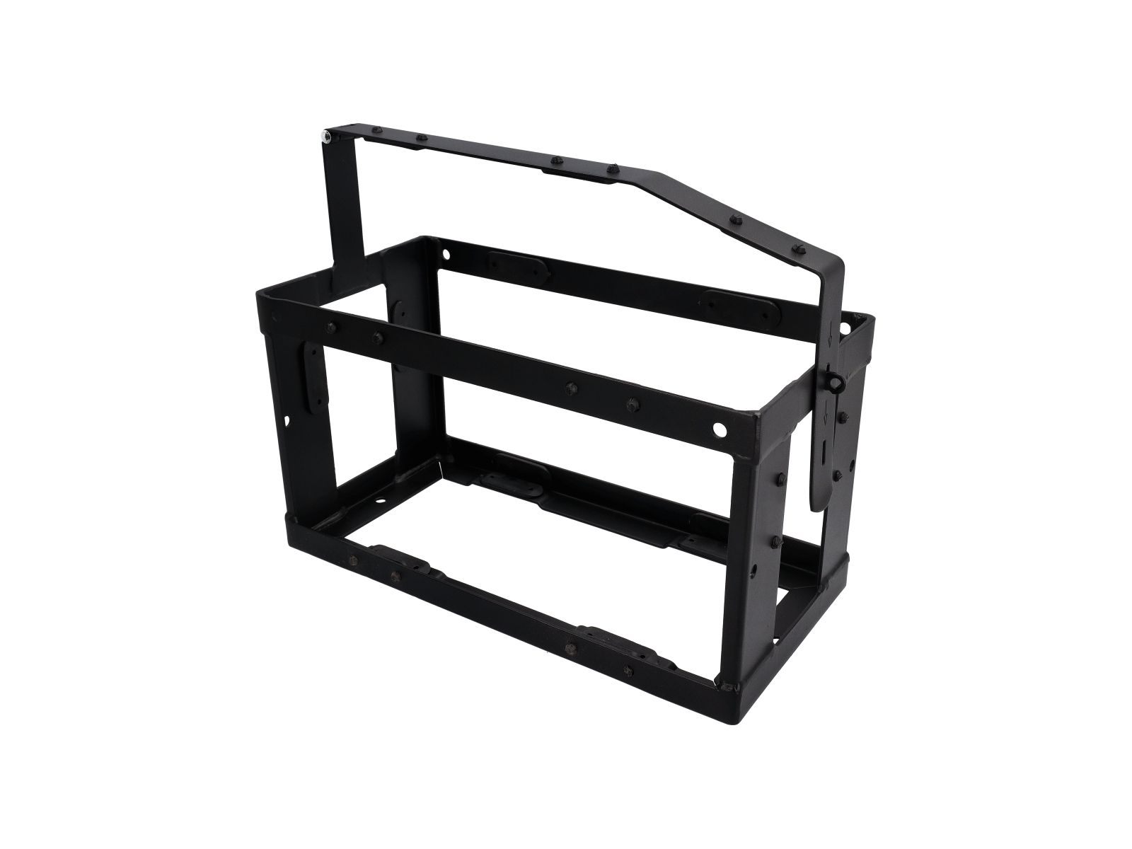 Il supporto è realizzato in solida lamiera ed è protetto dalle intemperie e dall'ossidazione mediante un robusto rivestimento a polvere nero opaco.