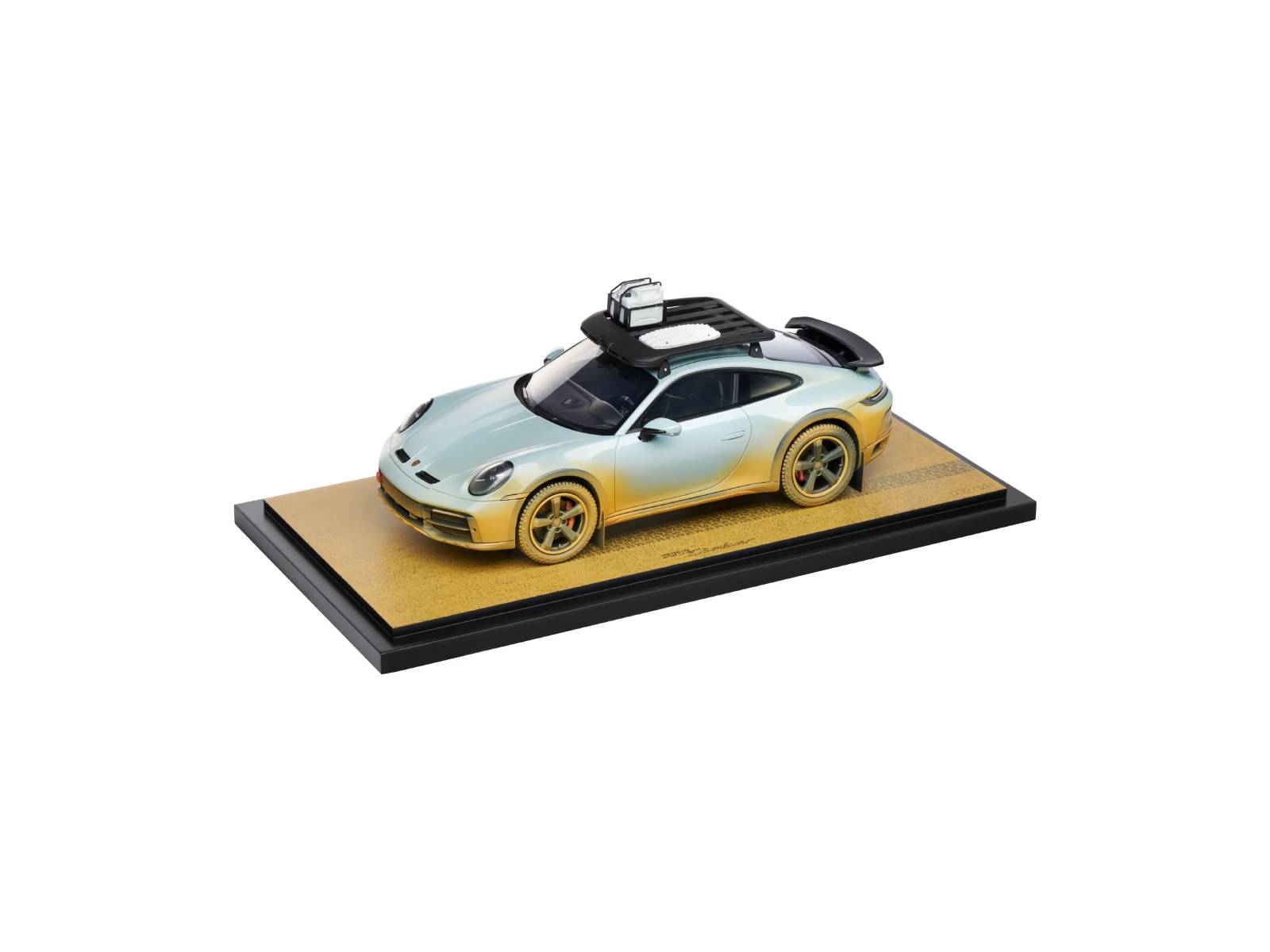 - Il modello celebra la leggendaria storia rallystica di Porsche, rendendo omaggio a icone come la 911 SC Safari e la 959 Parigi-Dakar . Cattura l'essenza della vera 911 Dakar (992) : un'auto sportiva progettata per conquistare terreni accidentati senza sacrificare le prestazioni.