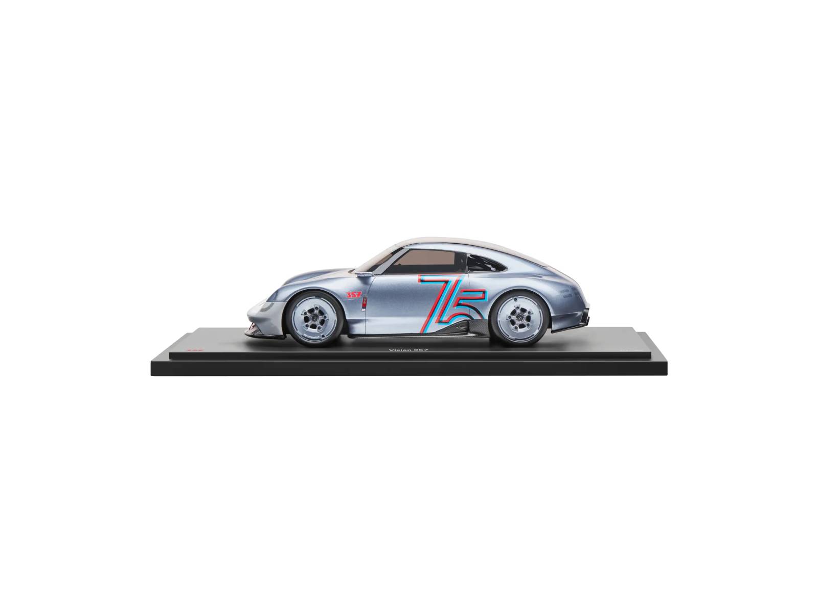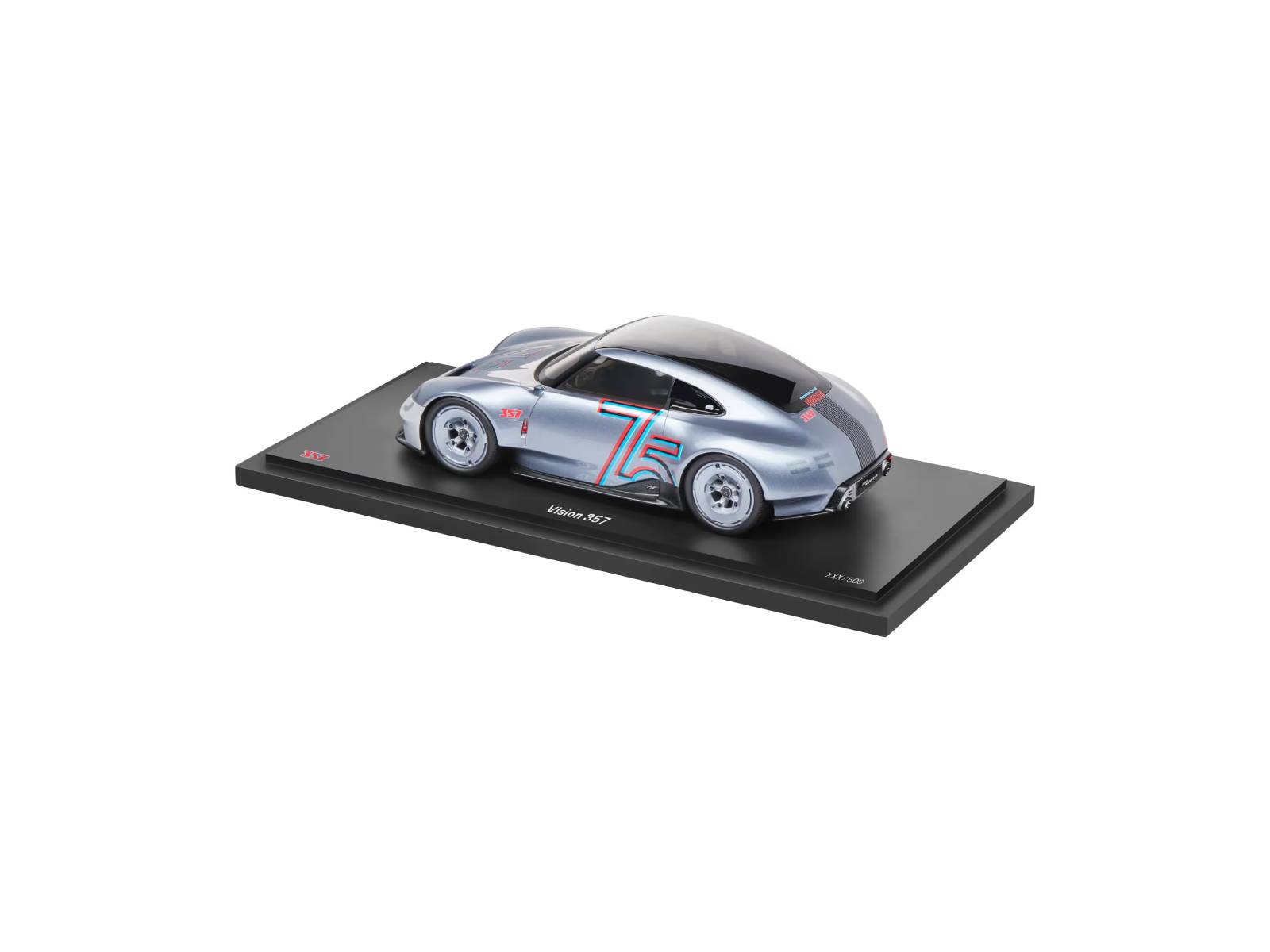 - Il modello riproduce le linee eleganti e scultoree del concept Vision 357 con dettagli eccezionali: dal parabrezza avvolgente e dalle superfici pulite alla futuristica firma luminosa a quattro punti. Ogni angolazione riflette l'impegno di Porsche per la purezza del design e la maestria artigianale .