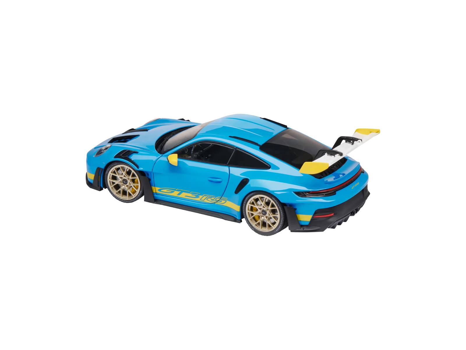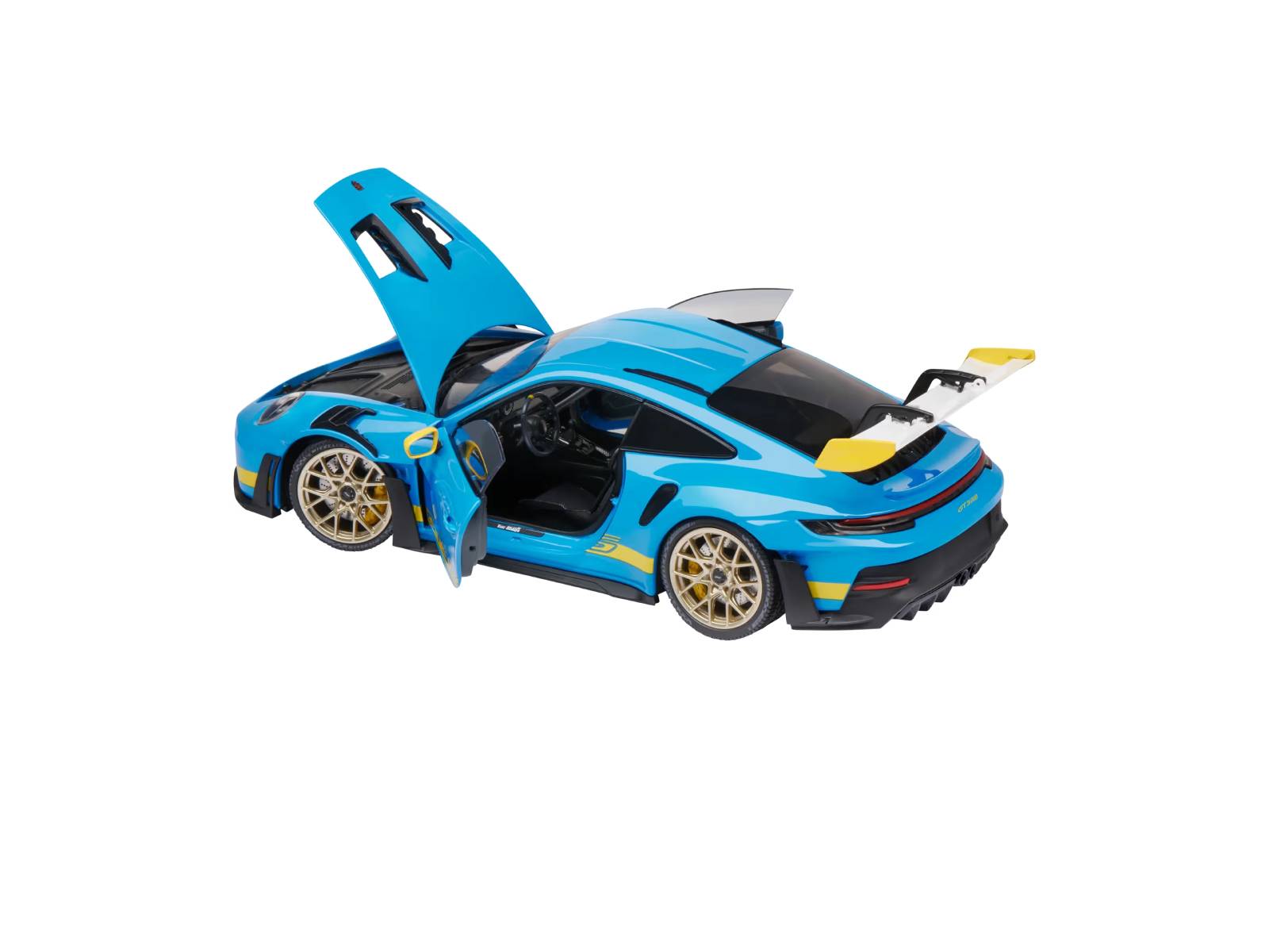 L'esclusivo modello in scala 1:18 della Porsche 911 GT3 RS (992) mostra un'impressionante attenzione ai dettagli e merita un posto in qualsiasi collezione. Con l'esclusiva confezione inclusa, diventa il regalo perfetto per ogni appassionato Porsche. Realizzato in resina. Esterno blu/giallo, interni neri.
