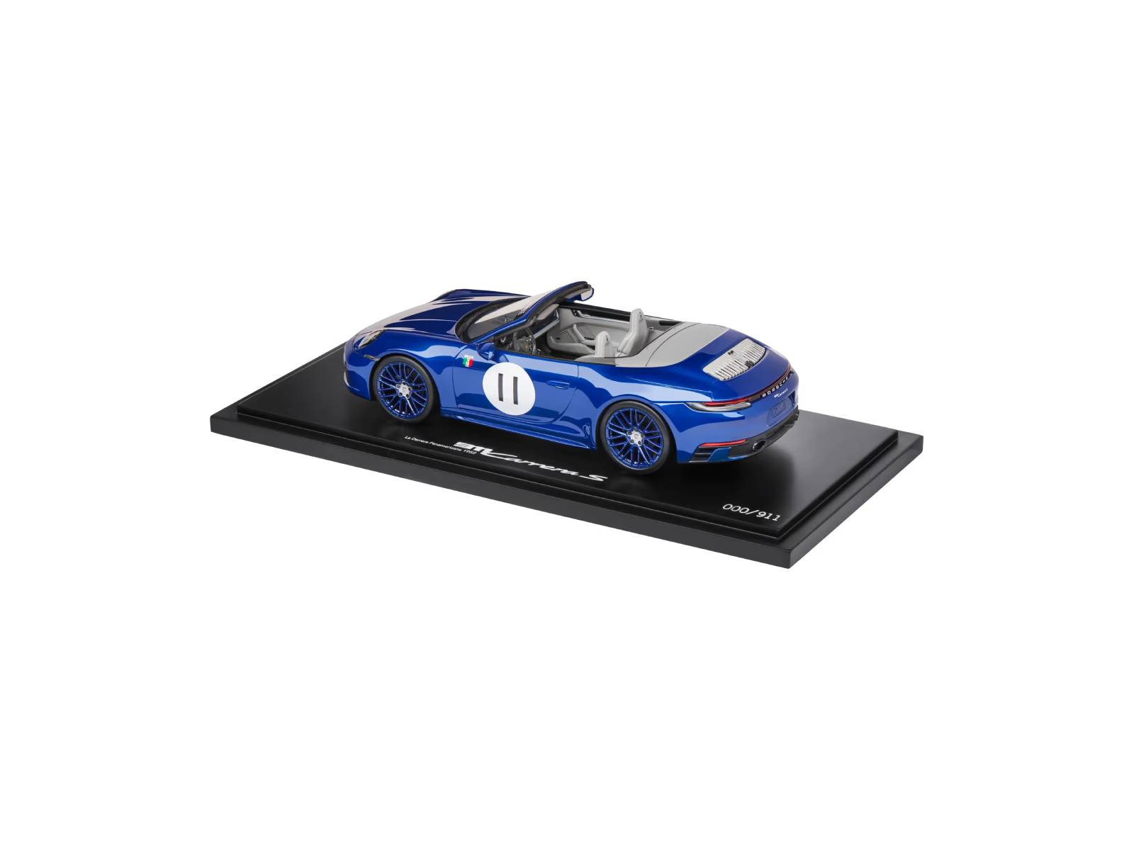 - Realizzato in resina di alta qualità , il modello riproduce ogni curva scolpita e ogni dettaglio aerodinamico della vera 992 Carrera S Cabriolet. Dalla straordinaria finitura blu genziana metallizzato agli interni color pastello e al tetto grigio grafite , incarna l'impegno di Porsche per la perfezione del design.