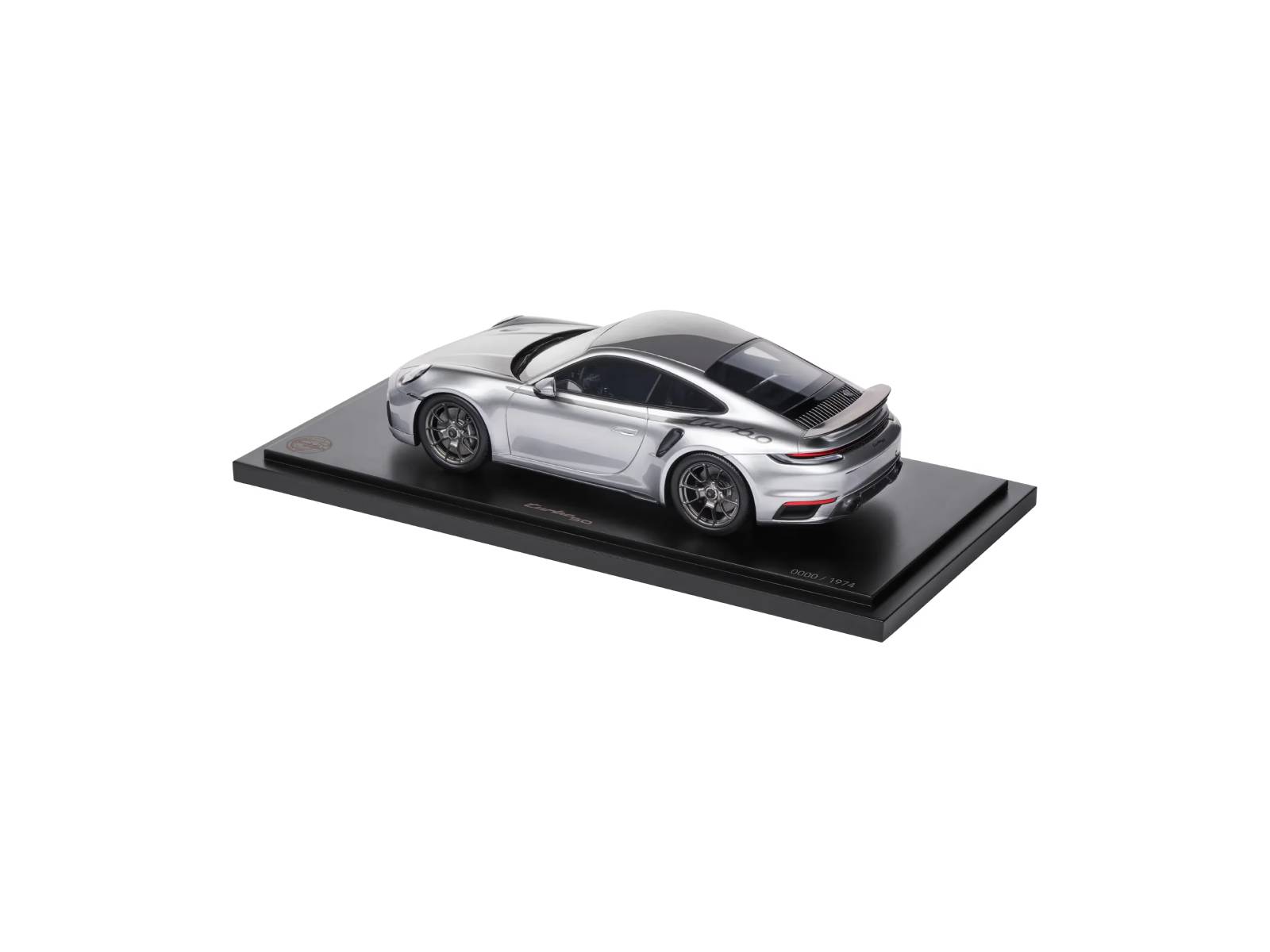 - Realizzato in resina di alta qualità , il modello offre una precisione e una fedeltà delle superfici eccezionali. Ogni curva, presa d'aria e dettaglio della Turbo di generazione 992 è riprodotto fedelmente, riflettendo l'attenzione ossessiva di Porsche per i dettagli in miniatura.