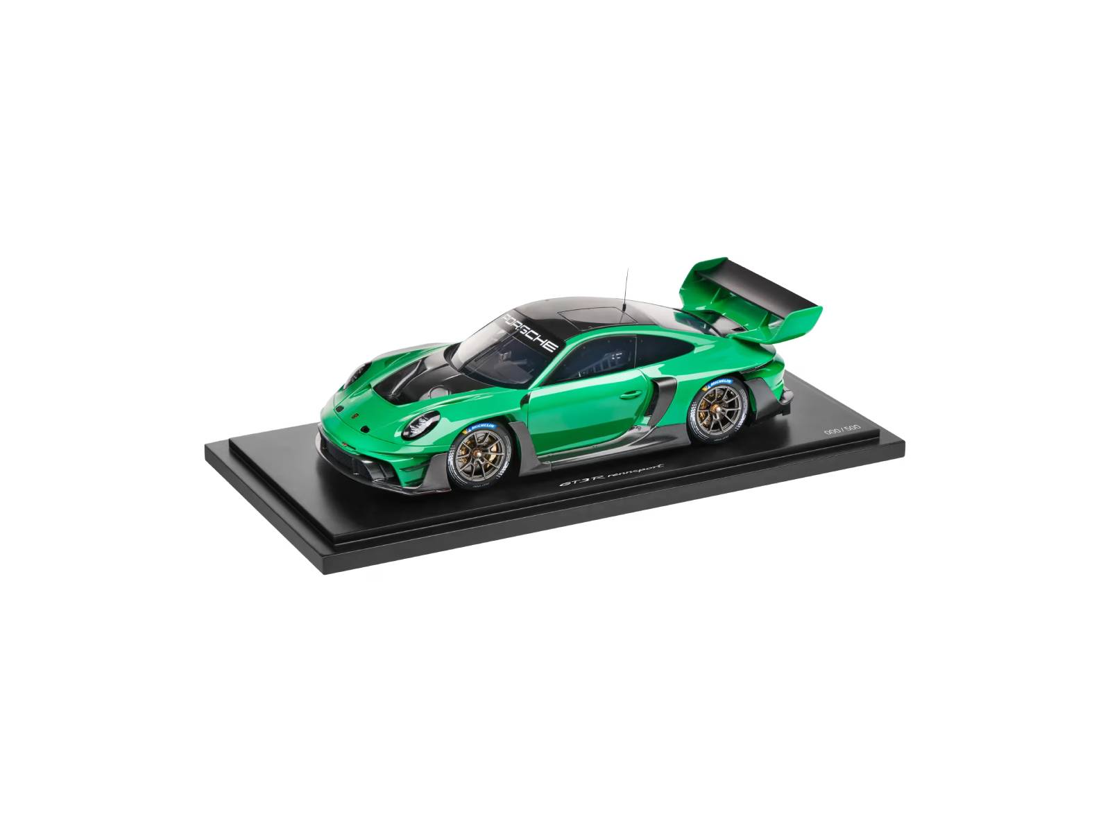 - Elevato livello di dettaglio e finitura: nonostante sia in resina, il modello è realizzato con precisione per riflettere le linee di design, le proporzioni e le finiture della GT3 R Rennsport a grandezza naturale.