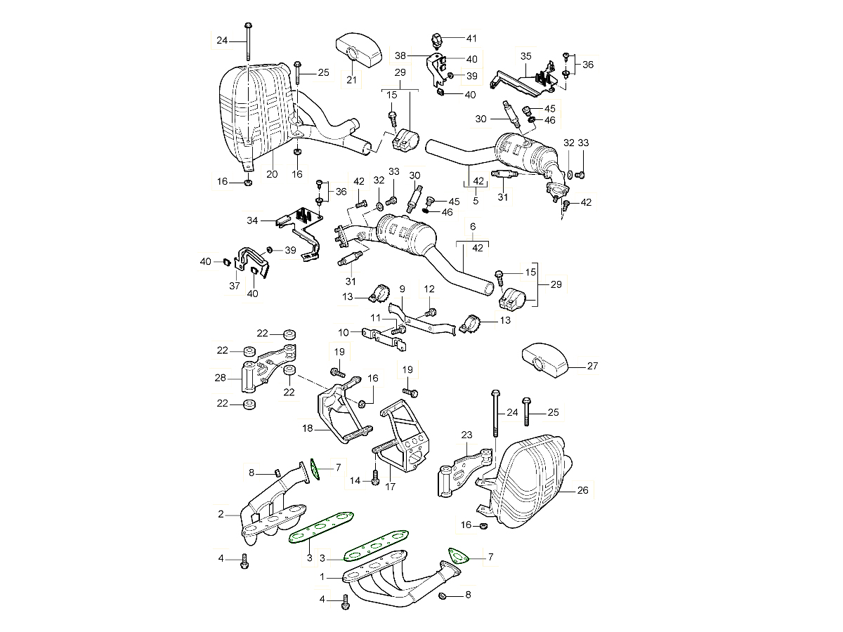 Situato tra il collettore/scambiatore di calore e il raccordo del catalizzatore/tubo di scarico sui modelli Porsche che utilizzano i motori M96/M97/M98.