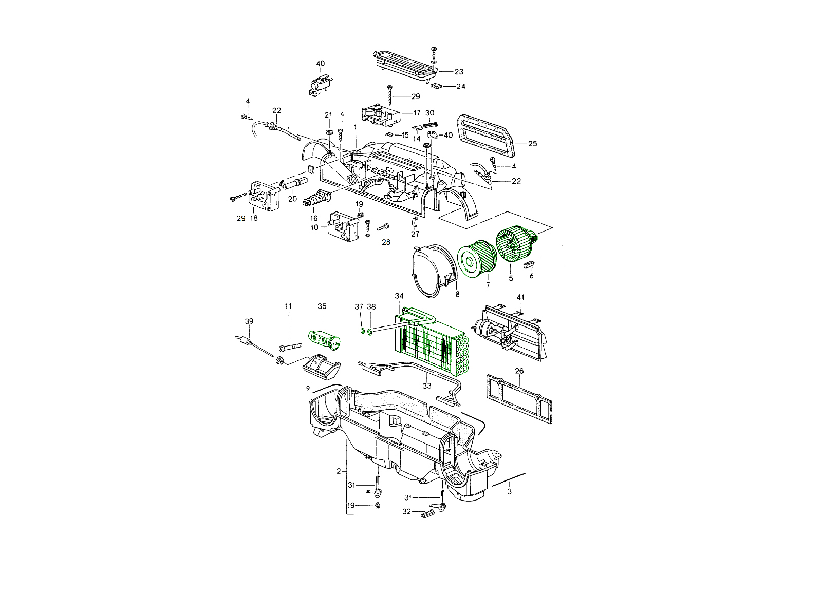 Questo kit completo di assistenza per l'aria condizionata (A/C) è un set completo di componenti HVAC progettati per rinfrescare o ripristinare il sistema di climatizzazione della tua Porsche 993. Combina componenti chiave (nucleo evaporatore OE Match, motorini del ventilatore A/C, filtro antipolline (abitacolo), valvola di espansione e guarnizioni O-ring essenziali), offrendoti tutto il necessario per prestazioni di A/C di livello professionale e un flusso di refrigerante senza perdite.
