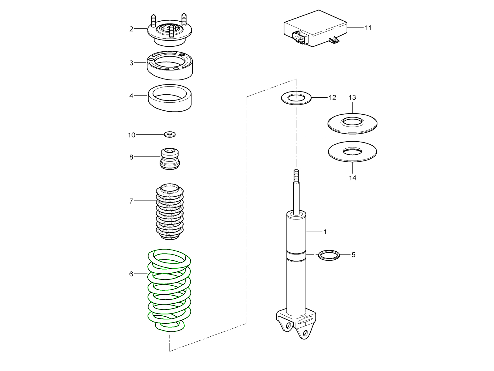 Installate all'interno del gruppo sospensioni, le molle elicoidali si comprimono e si rimbalzano con la corsa delle sospensioni per assorbire gli impatti stradali e stabilizzare la carrozzeria del veicolo. La loro rigidità, calibrata con precisione, interagisce con gli ammortizzatori Porsche per mantenere il contatto con gli pneumatici, la precisione dello sterzo e la qualità di guida complessiva.